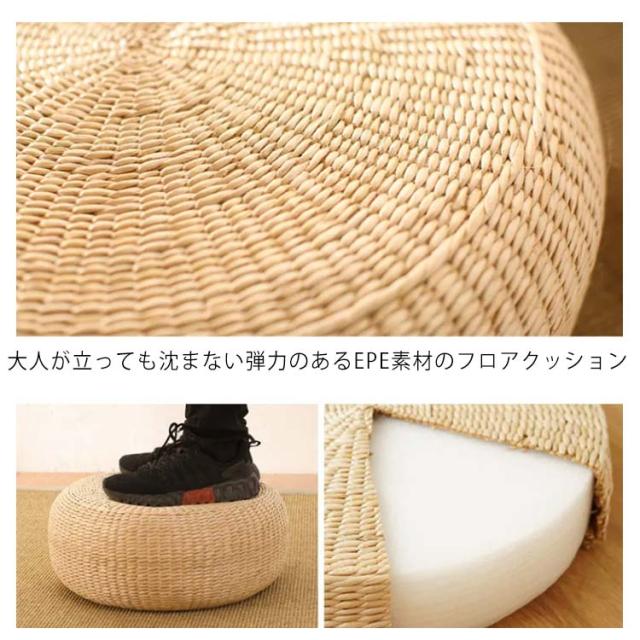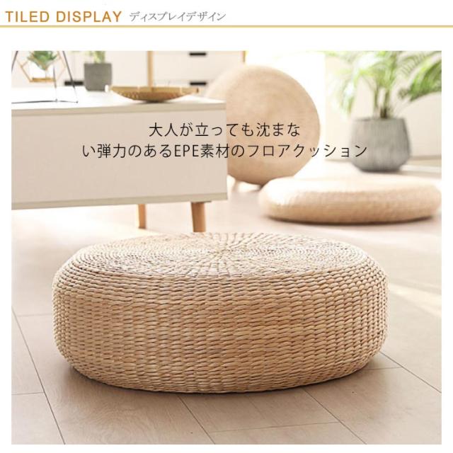 | 和室だけでなくフローリングも空間デザイン座布団 大人が立っても沈まない弾力のあるEPE素材のフロアクッション 体重をしっかり支えてくれるので、弾性が高い高反発タイプや硬めの座り心地が好きな方へもおすすめの座布団です コタツ用の座ぶとんや重ねてむくみが気になるときの足置き用の椅子がわりにしてもOKです 普段使用しないときは、重ねてコンパクトに片づけられ、来客時にサッと取り出せる丸座布団です 畳の和室、フローリングの洋室など、どんなお部屋のイメージも損なわない形のフロアークッションです | |