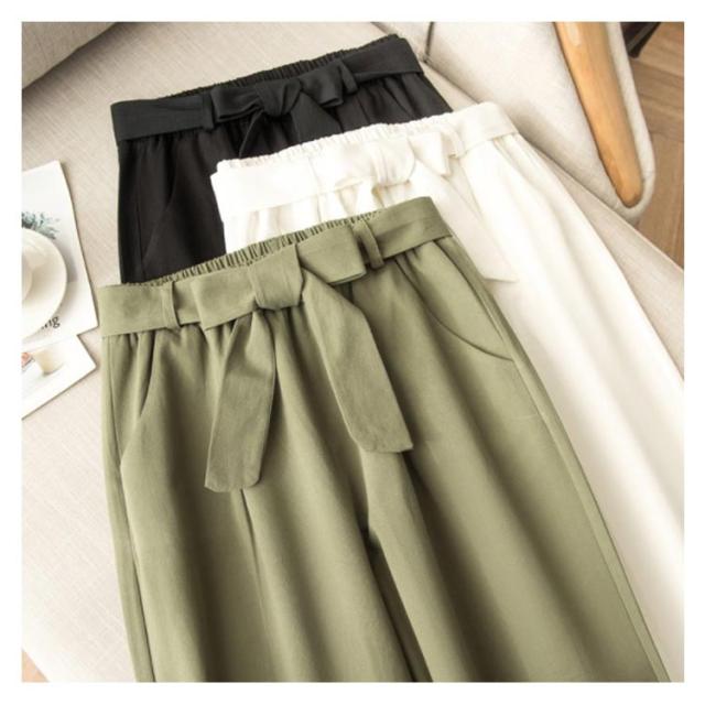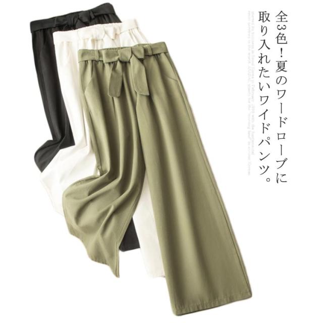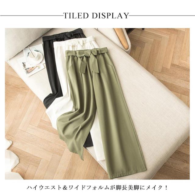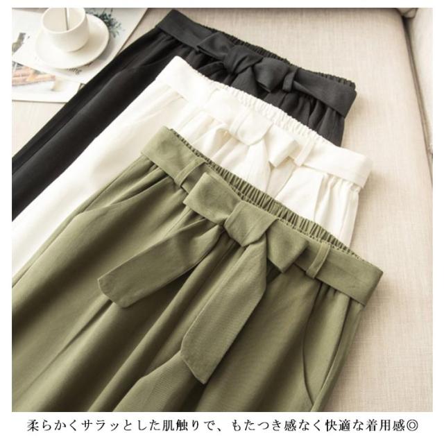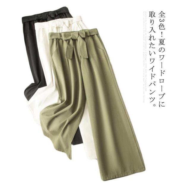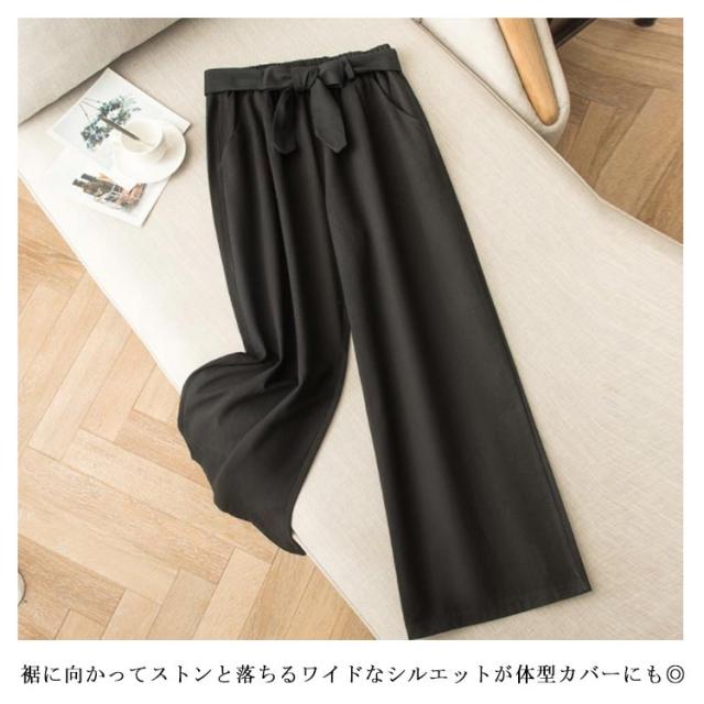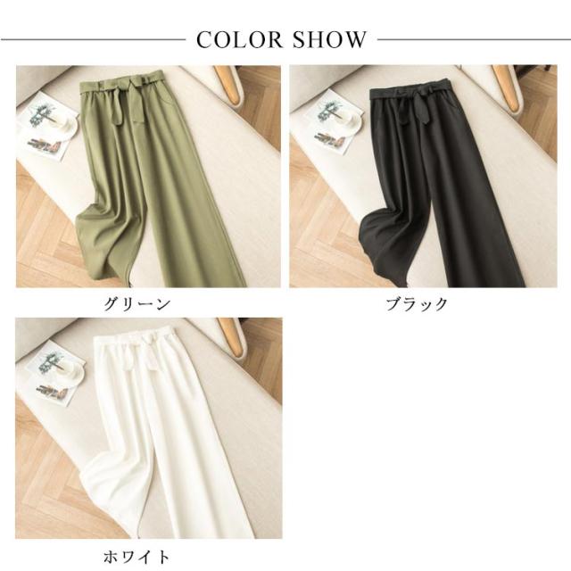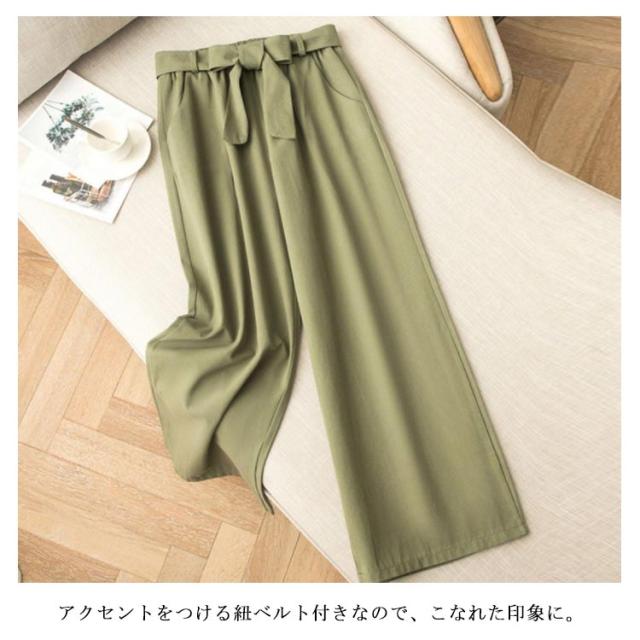 ワイドパンツ レディース ロング丈 ボトムス ロングパンツ ウエストゴム ストレート ハイウエスト 無地 ゆったり 春夏物 ベルト付き 薄手 お洒落