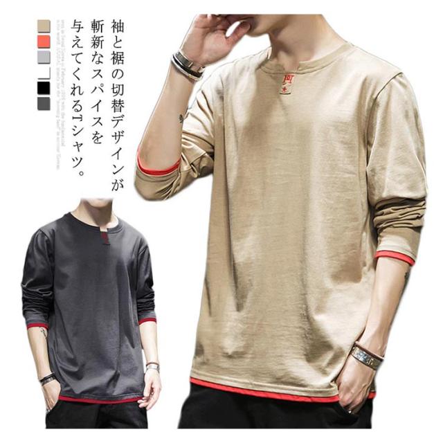 | 袖と裾の切替デザインが斬新なスパイスを与えてくれるTシャツ。 コットン100%の素材にゆったりとしたサイズ感で快適な着心地。 シンプルなデザインが1枚でも十分な存在感を発揮してくれます。 春秋カジュアル系ファッションの定番アイテム、男性が着やすい7色が用意される。 インナー、トップスとして活躍できるロンTを大放出!! | |