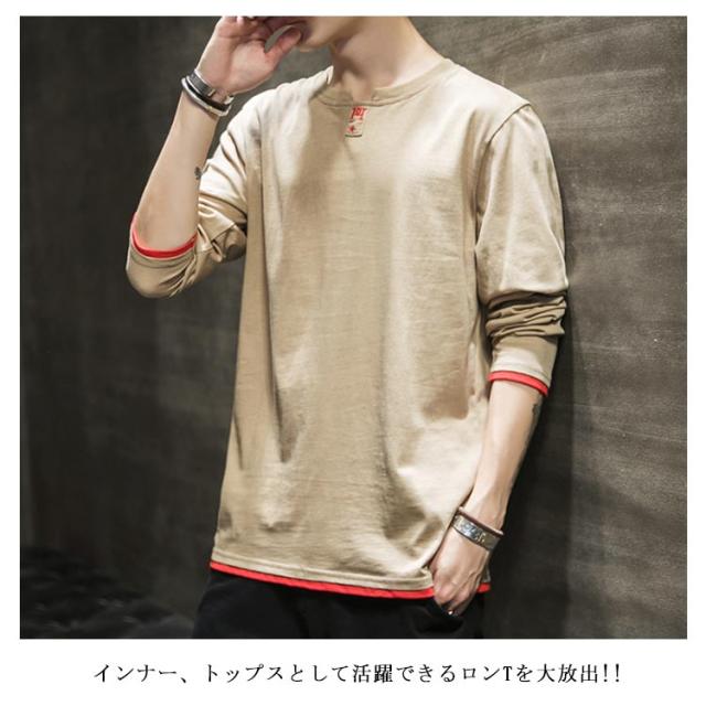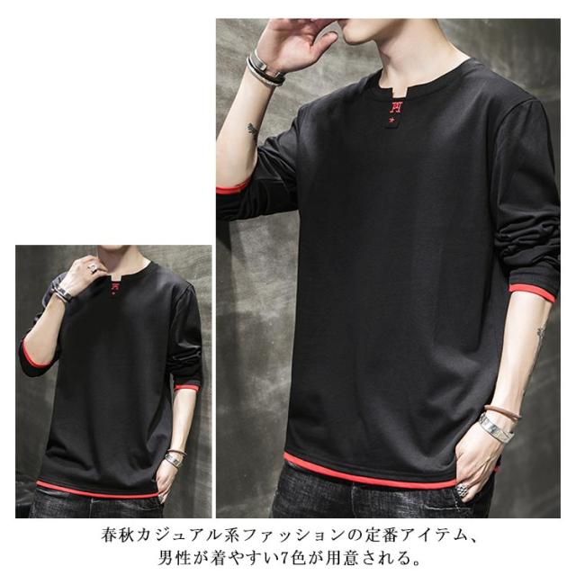 Tシャツ メンズ 長袖 カットソー トップス ブルオーバー 無地 春物 大きいサイズ メンズファッション ゆったり カジュアル 秋作