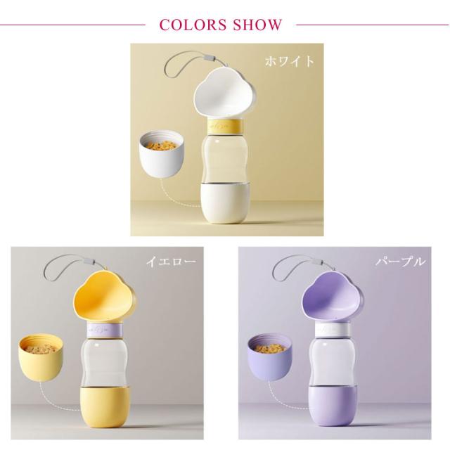 | お水とおやつ・ごはんを入れることができる、1台2役のペット用ウォーターボトル。 ぐるぐる回転するだけでON/OFF切換え、簡単に水分補給ができます。 飲み口に残ってしまった水を捨てられない時でもボトルを上に向けるだけで、水を元に戻せるのも便利。 ボトル下部には、フードやおやつ用のケースがついているので、お散歩中にワンちゃんがお腹がすいた時も安心。 コンパクトサイズなので、カバンやリュックのポケットに入れて携帯便利。 動物にも環境にもやさしいPETとABS素材を使用。 各パーツは分離できるので、取り外し簡単でお手入れしやすいから衛生的。 | |
