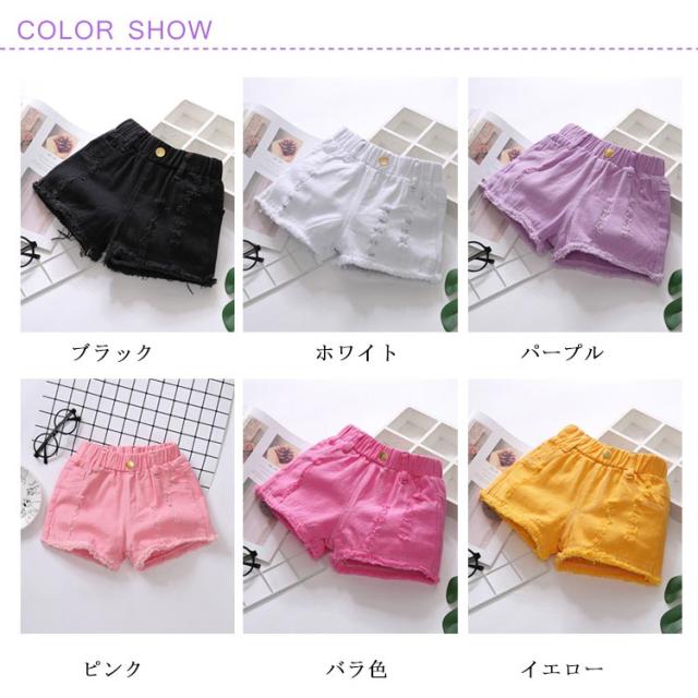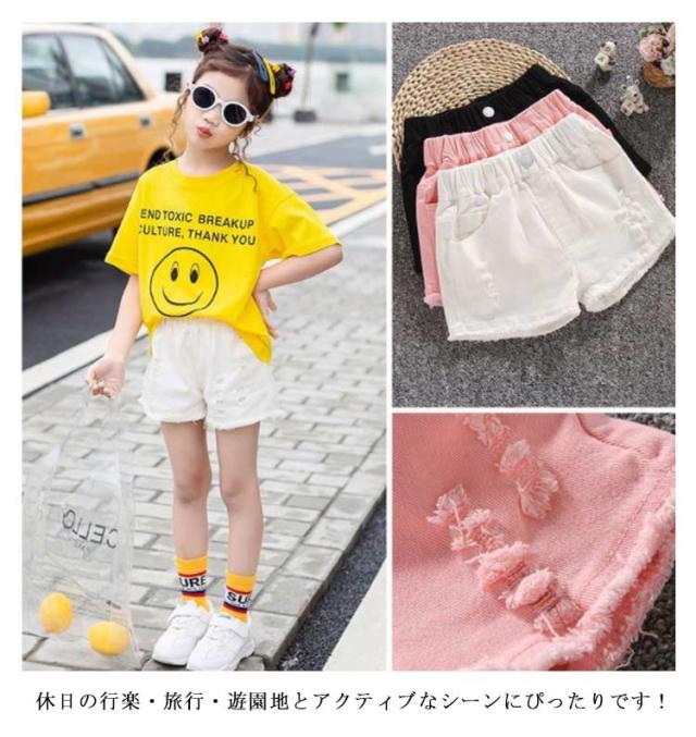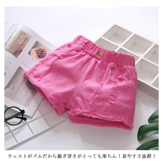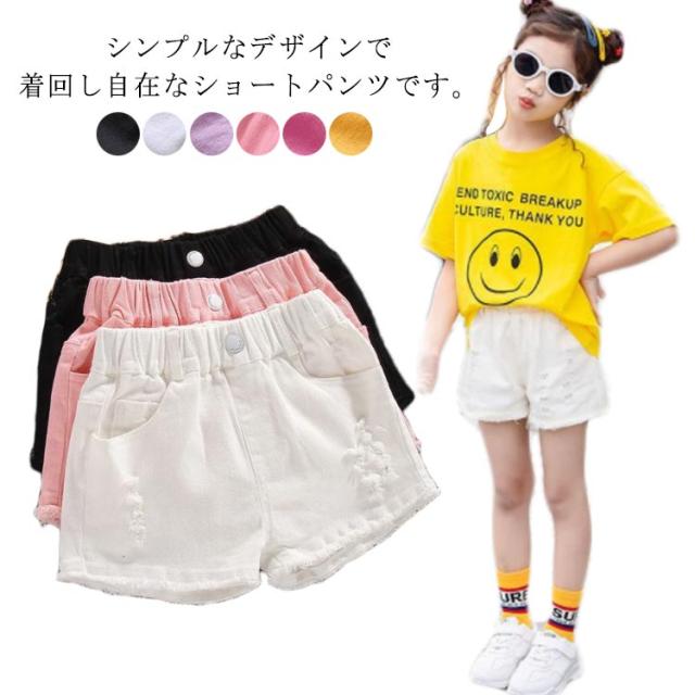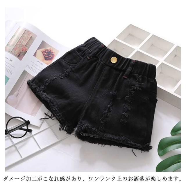 デニムパンツ シンプル ダメージ加工 短パン ウエストゴム 夏物 子供服 女の子 ボトムス 切りっぱなし 切りっぱなし ゆったり スポーツ ショートパンツ