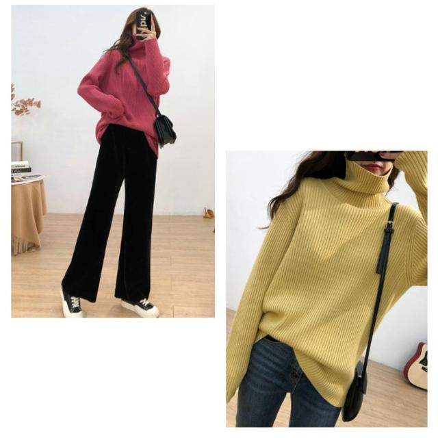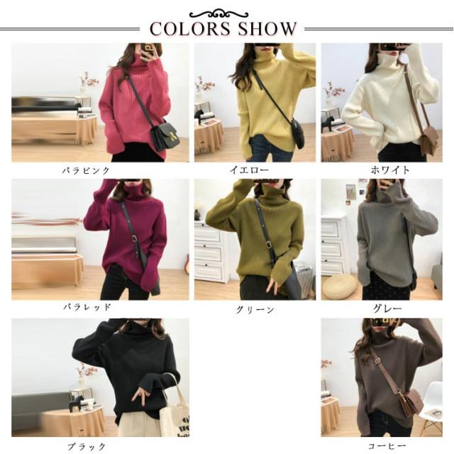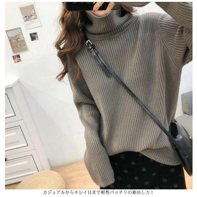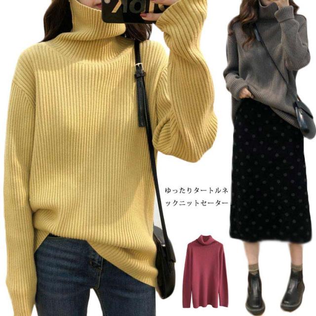 ニットセーター レディース タートルネック ハイネック ニットトップス プルオーバー セーター 長袖 ロング丈 無地 シンプル カジュアル ゆったり 柔らかい キレイめ 秋冬 通勤 オフィス