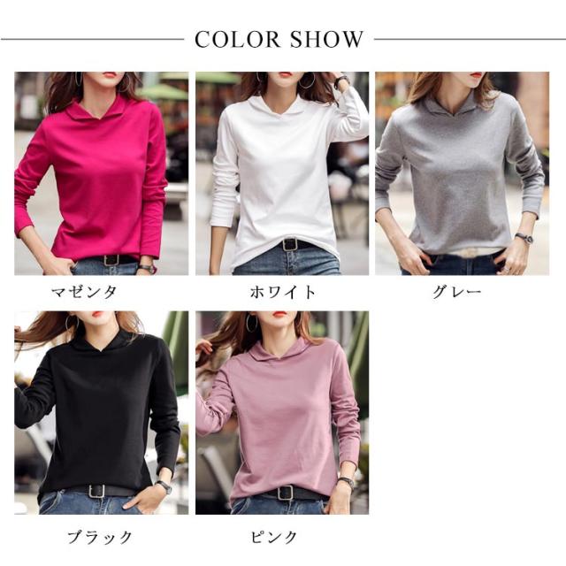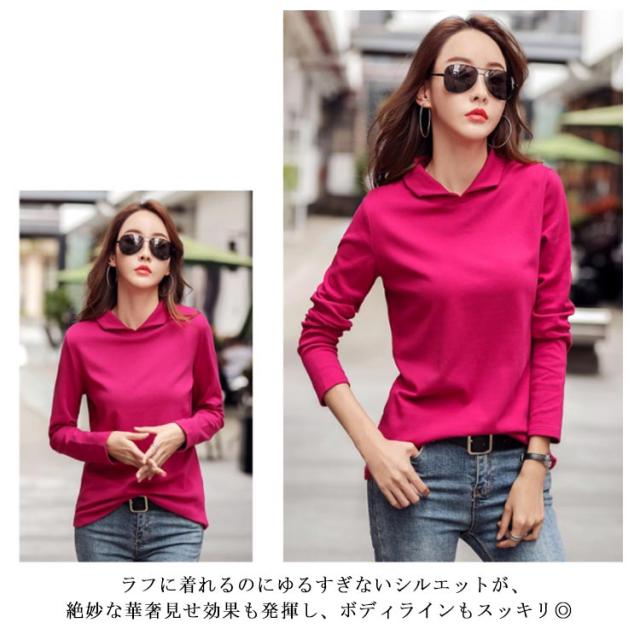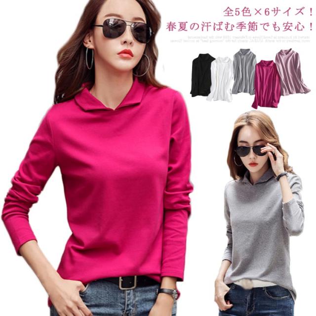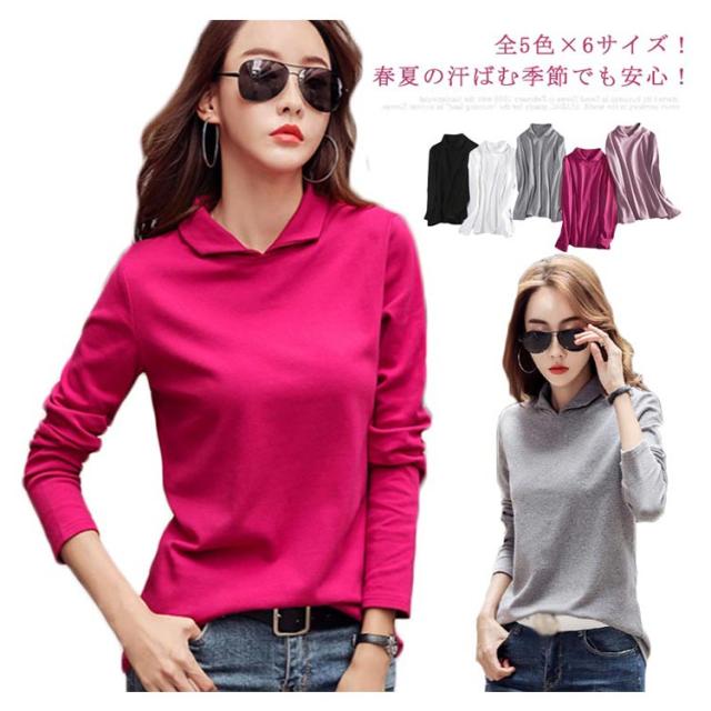 全5色×6サイズ!襟付き長袖tシャツ ポロシャツ レディース tシャツ カットソー 長袖 無地 綿 コットン シンプル おしゃれ 大きサイズ 春服 春物