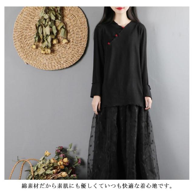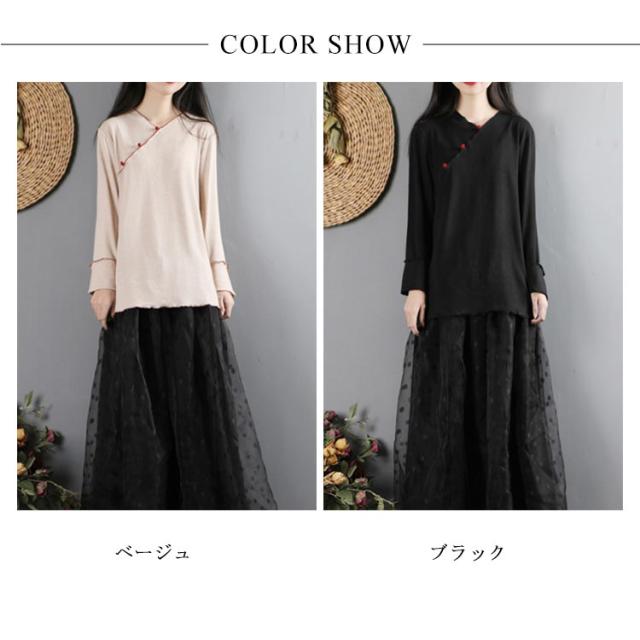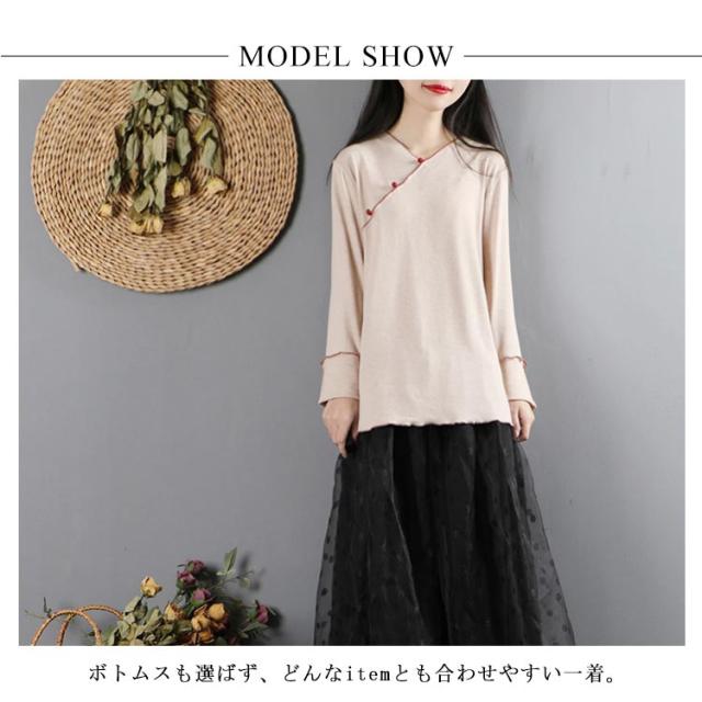 | 全2色!中国風トレロ改良typeの長袖tシャツ。 フリーサイズなのに伸縮性高いなので幅広い体型も使いいただけます。 広がったネックデザインがすっきりとした印象に 斜めボタンもさりげないポイントです。 綿素材だから素肌にも優しくていつも快適な着心地です。 ボトムスも選ばず、どんなitemとも合わせやすい一着。 | |