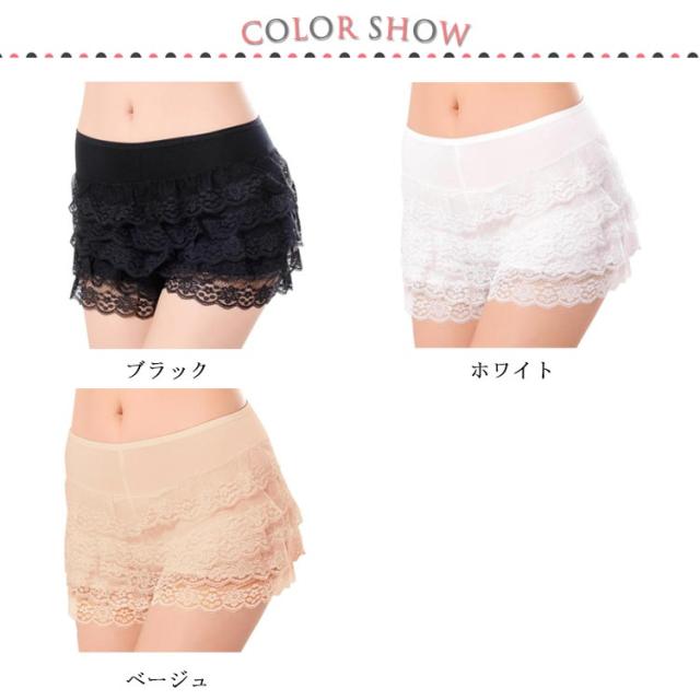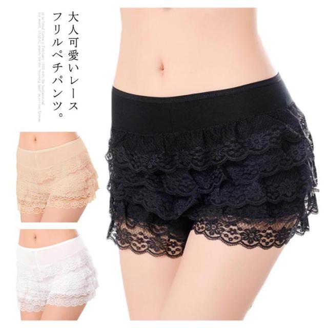 ペチパンツ レースフリル 送料無料 レディース ペチコート 5段フリル 可愛い キュロット パンツ ショーツパンツ ペチパン 下着 ストレッチ 透け防止