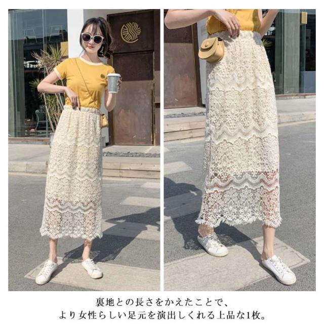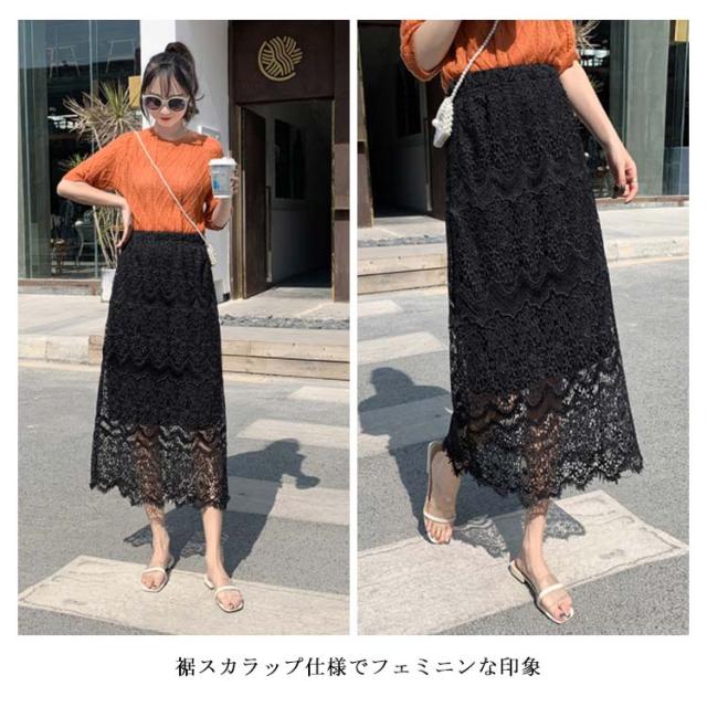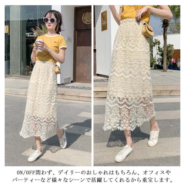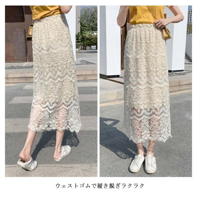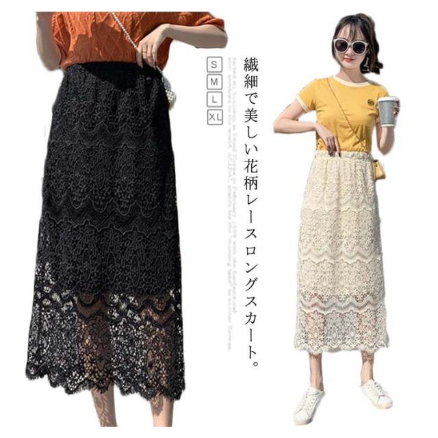レーススカート ロングスカート 送料無料 レディース マキシスカート ミモレ丈 ウェストゴム キレイめ タイトスカート 春夏 2020新作 花柄レース 通勤 お出かけ