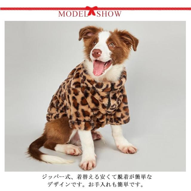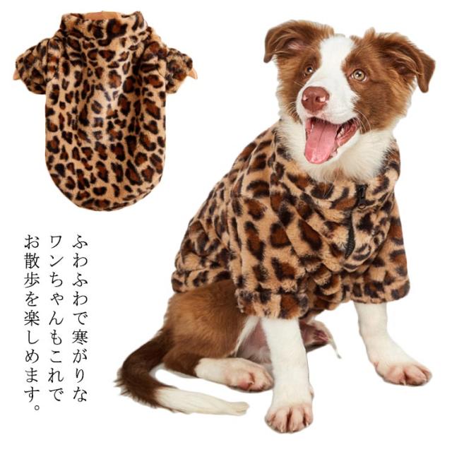 送料無料 犬服 ドッグウェア もこもこ フリース ヒョウ柄 レオパード ジップ ボアジャケット 冬 防寒 トップス ファスナー おしゃれ ペット服 チワワ ダックス トイプードル パグ フレンチブルドック