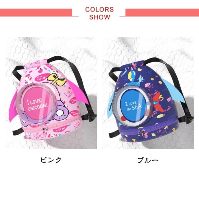 送料無料 プールバッグ 女の子 男の子 ナップサック 2層式 キッズ かわいい リュック型 子供 ビーチバッグ プールバック スイムバッグ プール 水泳 スイミング バッグ 幼稚園 小学生 低学年 女子 男子 ピンク ユニコーン