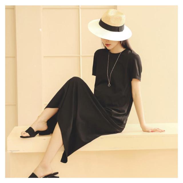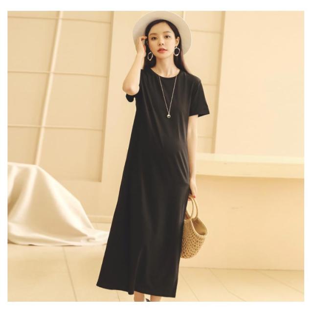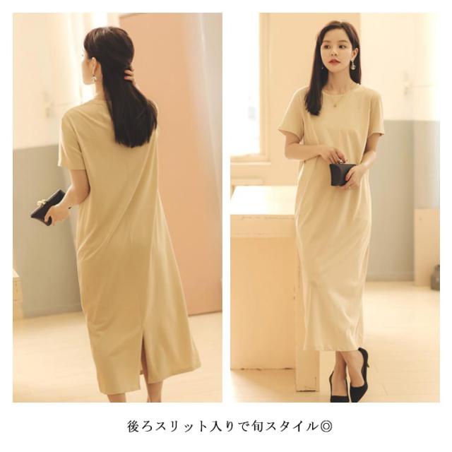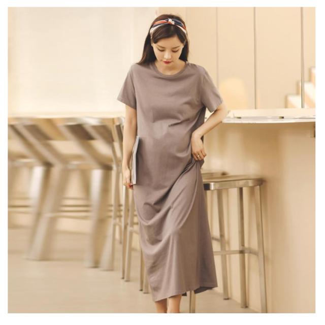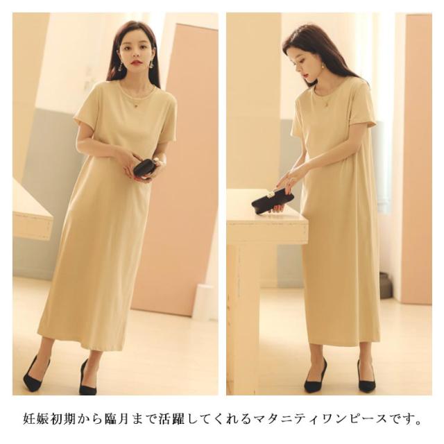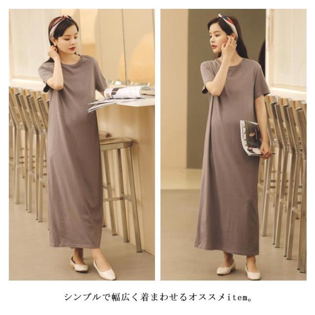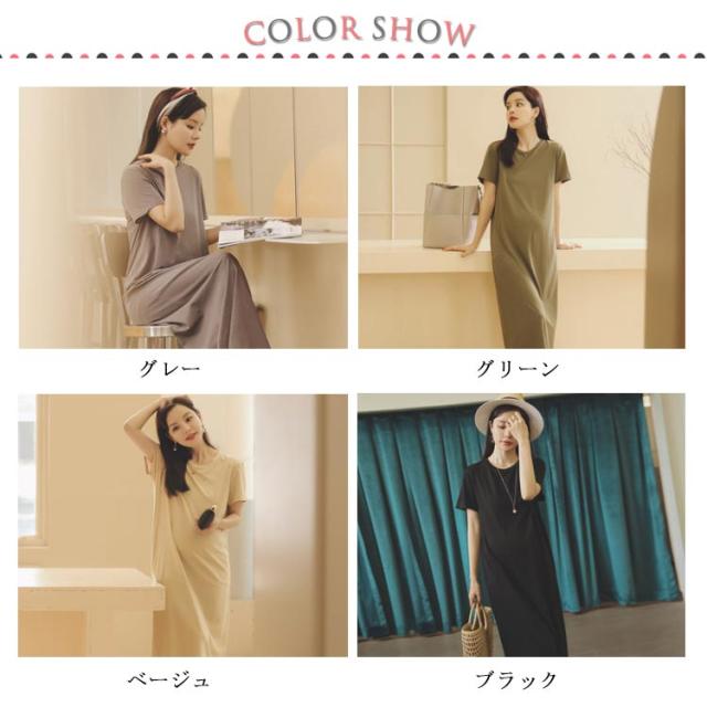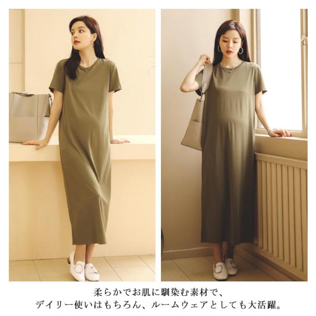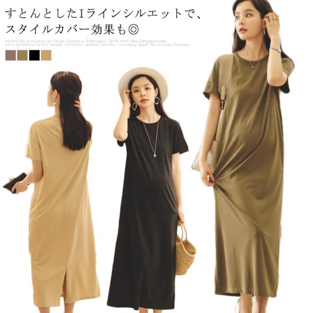 Tシャツワンピース 半袖 マキシ丈 ワンピース ロングワンピース 送料無料 レディース マタニティウェア マタニティワンピース ゆったり スリット 体型カバー とろみ