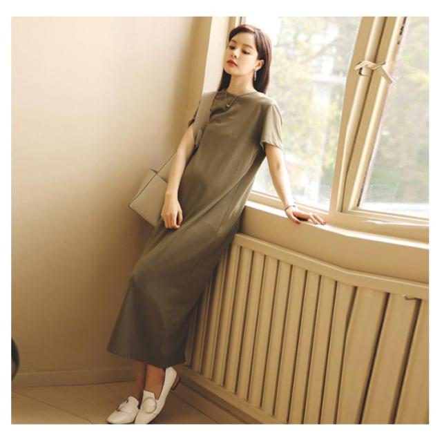 | すとんとしたIラインシルエットで、スタイルカバー効果も◎ とろみのあるモダール生地のマキシ丈Tシャツワンピース。 後ろスリット入りで旬スタイル◎ マタニティワンピースとして、全体的にゆるっとした大人のリラクシングコーデ♪ 柔らかでお肌に馴染む素材で、デイリー使いはもちろん、ルームウェアとしても大活躍。 シンプルで幅広く着まわせるオススメitem。 妊娠初期から臨月まで活躍してくれるマタニティワンピースです。 | |