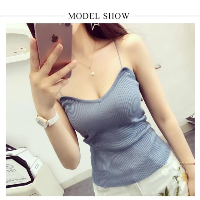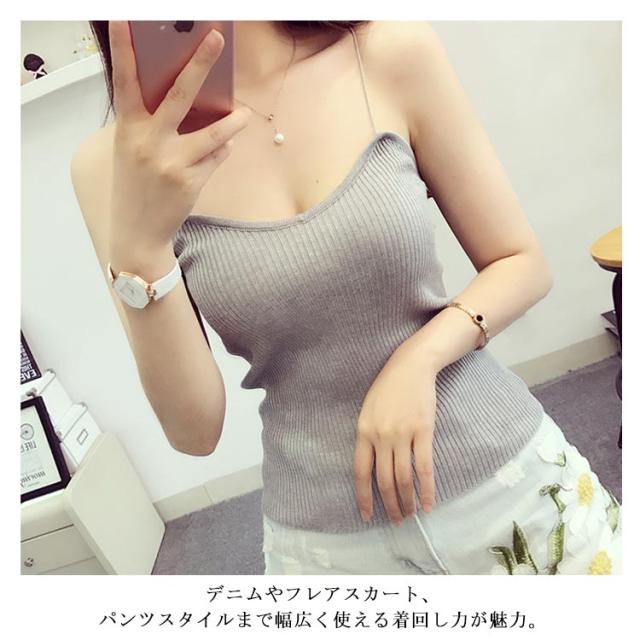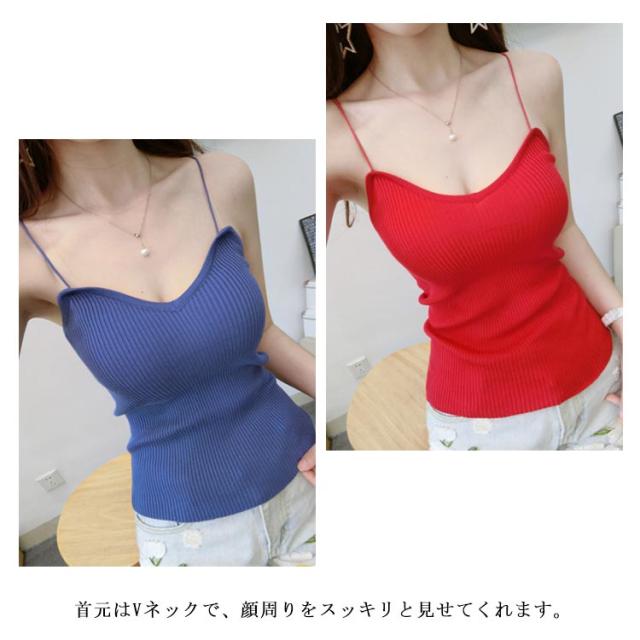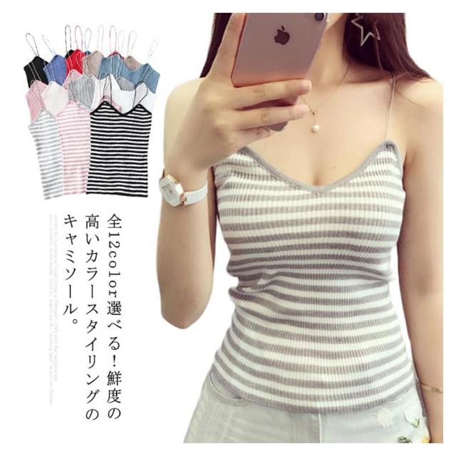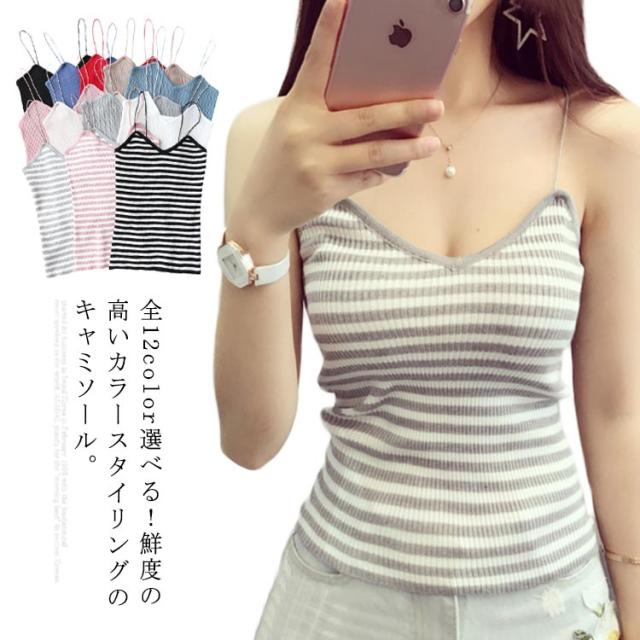 全12色!ニットキャミソール ニットキャミ レディース キャミソール キャミ インナー トップス リブ編み ニットトップス Vネック ノースリーブ コンパクト かわいい 無地 ボーダー 春夏 新作