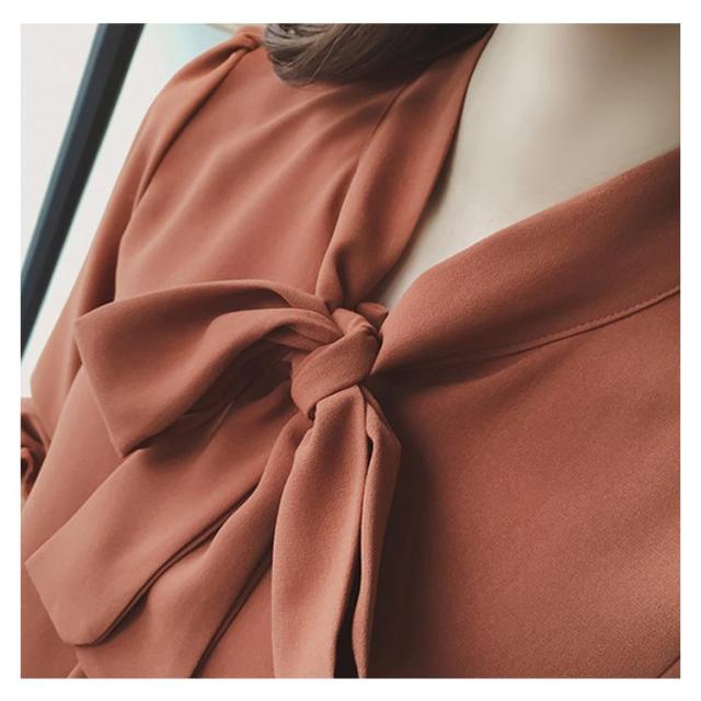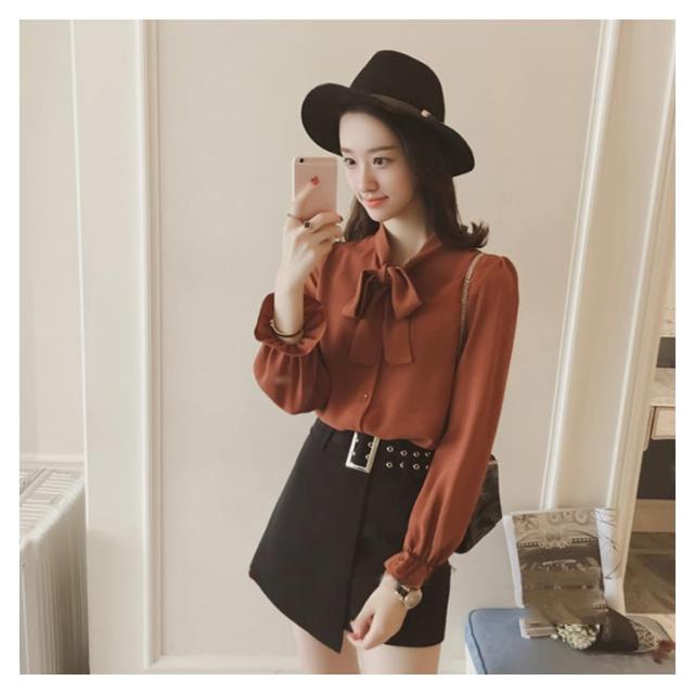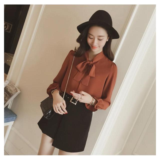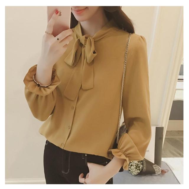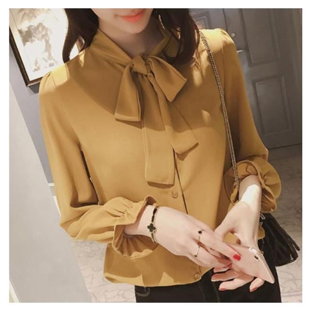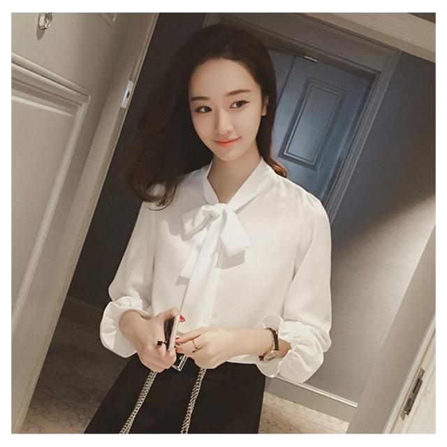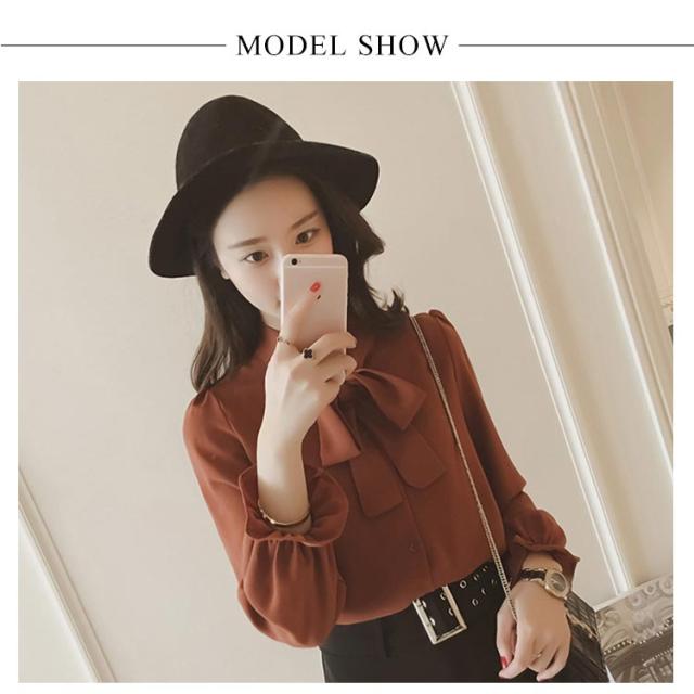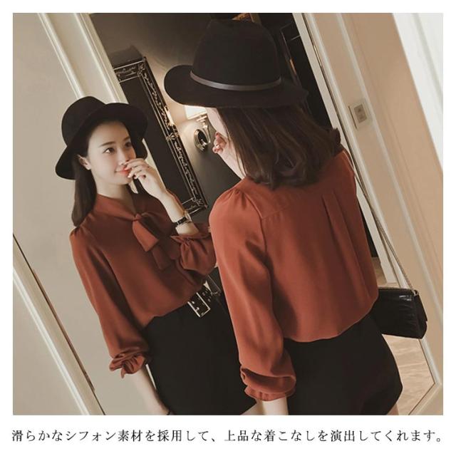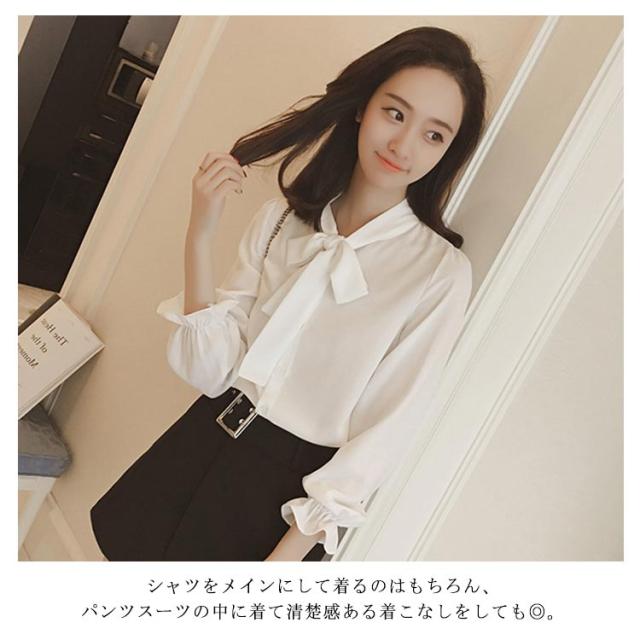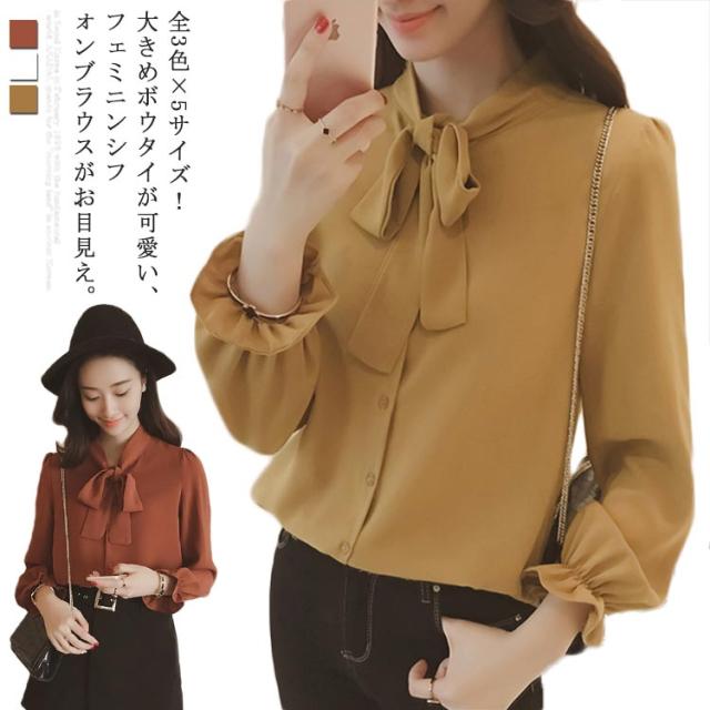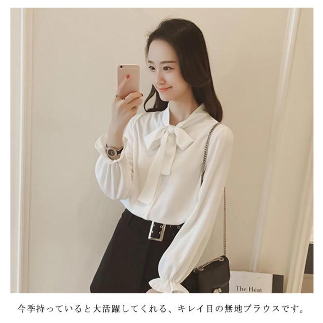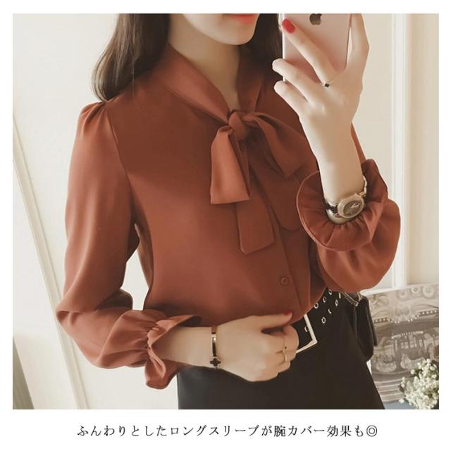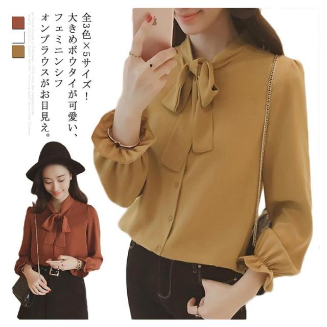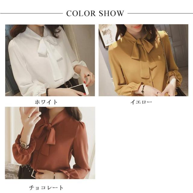 全3色×5サイズ!ボウタイシャツ ボウタイ リボンシャツ シャツ ブラウス トップス 長袖 オフィス 通勤 無地 春 夏 おしゃれ 女性