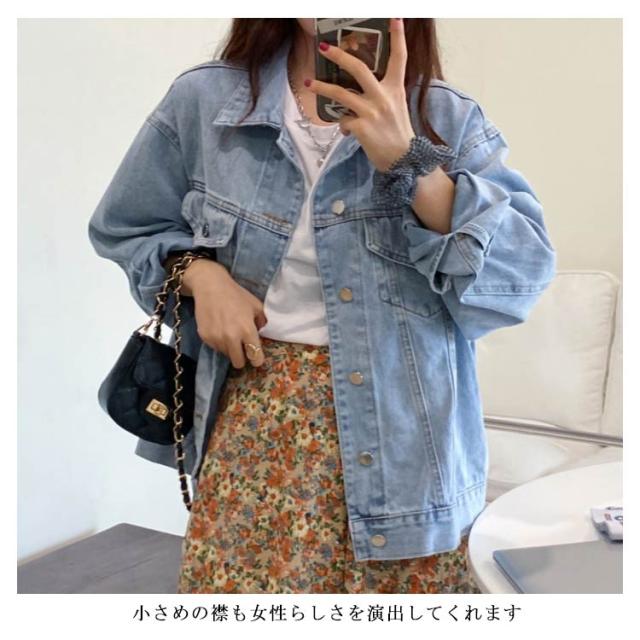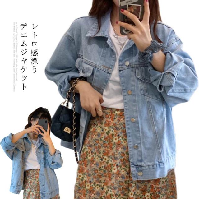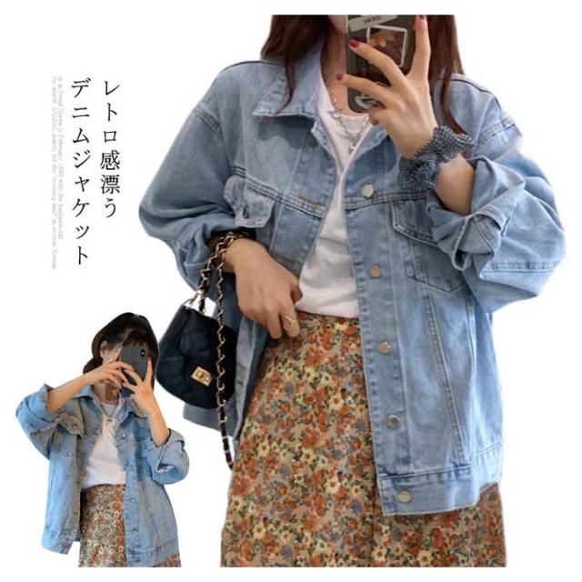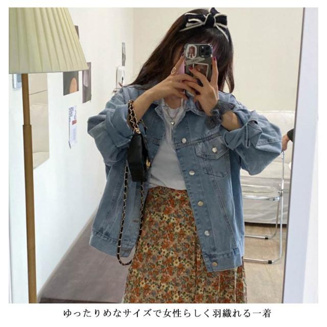 デニムジャケット レディース ジージャン ゆるジャケット カジュアルジャケット ショートアウター ルーズ オーバーサイズ ボタン付き 体型カバー 通学 通勤 無地 純色 春秋服 かわいい レトロ シック