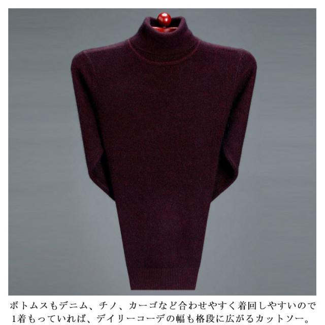 | 人気のニット素材で仕立てられたタートルネックセーター カシミアタッチというカシミアのような肌触りが楽しめる加工を生地に施し着心地にもこだわりを持って作られた1着 生地感で雰囲気を楽しむスタイリッシュな無地アイテムなので、もちろん1枚で着用しても上品で洗練されたコーデが楽しめます。 各色それぞれ選べる定番で持っておきたいクルーネック・大人っぽく着こなせるタートルネックとハイネックの3種類をチョイス。 また、ボリューム感ある首周りが魅せるインパクトが、スマートなおしゃれ感を主張してくれます。 上品さと爽やかさを見事に融合したこちらのタートルネックセーターは、1枚でももちろん、ジャケットのインナーに指名しても絶対に外さない即戦力アイテム! ボトムスもデニム、チノ、カーゴなど合わせやすく着回しやすいので1着もっていれば、デイリーコーデの幅も格段に広がるカットソー。 | |
