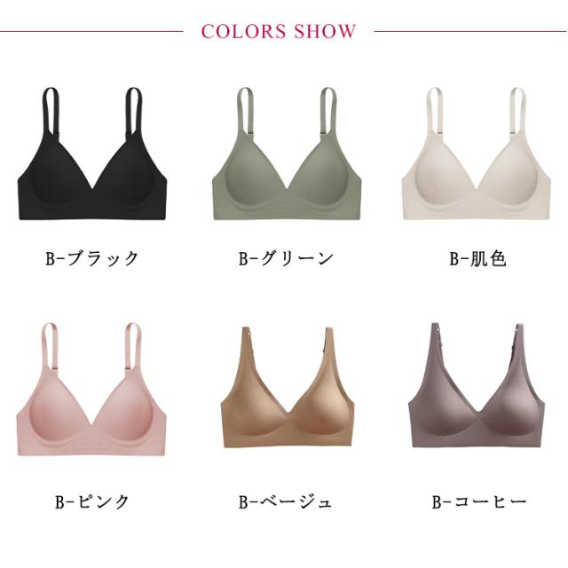 | ラクして美胸ができるストレスフリーな毎日のノンワイヤーブラ。 伸縮性能が向上して、よく伸びてどんなポーズでも優しく包み込むようなフィット感。 脇高設計で脇から寄せた胸をしっかり固定し、ふっくらパッドでバストをボリュームUP&くっきり谷間メイク! 寝ころんでもズレない!浮かない!ふんわり軽やかなつけ心地で綺麗なバストに。 マットでスムーズな質感で、たまらなくさわり心地がいいのもポイント。 縫い目がないので薄手のトップスにも響きにくく、コーデにも便利。 | |
