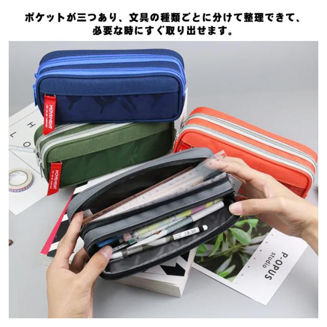 | たくさんペンが収納できる人気の大容量ペンケースです。 22.4*9.1*6.7cmの大きいサイズ。鉛筆や消しゴム以外の定規、三角定規、コンパスなど全部入る! ポケットが三つあり、文具の種類ごとに分けて整理できて、必要な時にすぐ取り出せます。 高品質のナイロン素材を採用。耐久性があり、清掃しやすく、耐摩耗性に優れています。 ペンケースだけではなく、コスメポーチなどにもお使いいただけます。 | |