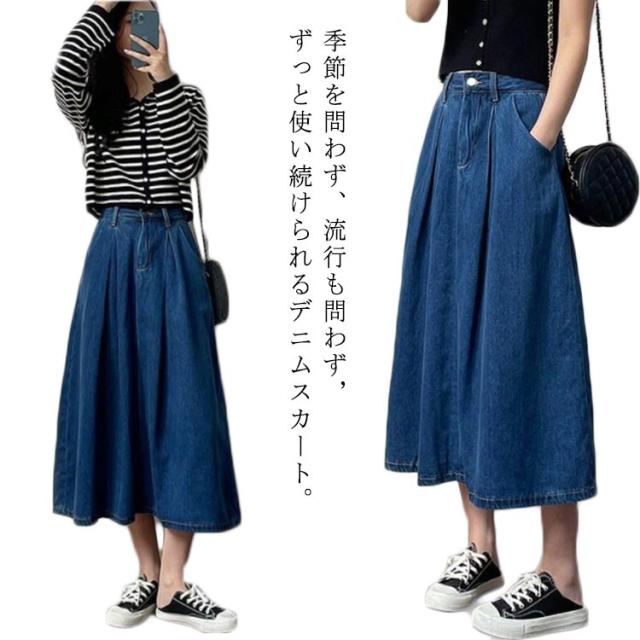 フレアスカート デニムスカート 大人 レディース スカート ロング丈 デニム マキシ丈 マキシスカート Aライン 体型カバー Aライン ゆったり 春夏 大きいサイズ シンプル ハイウエスト 無地 後ろウェストゴム