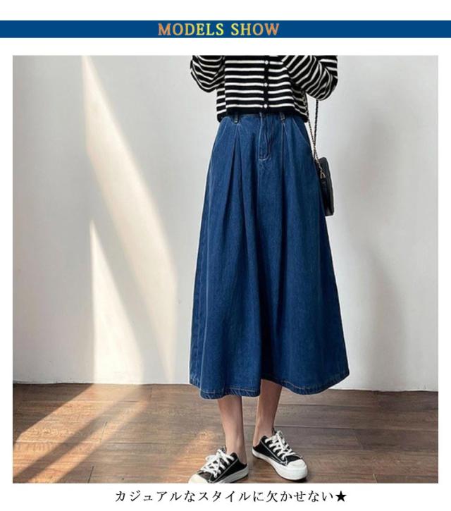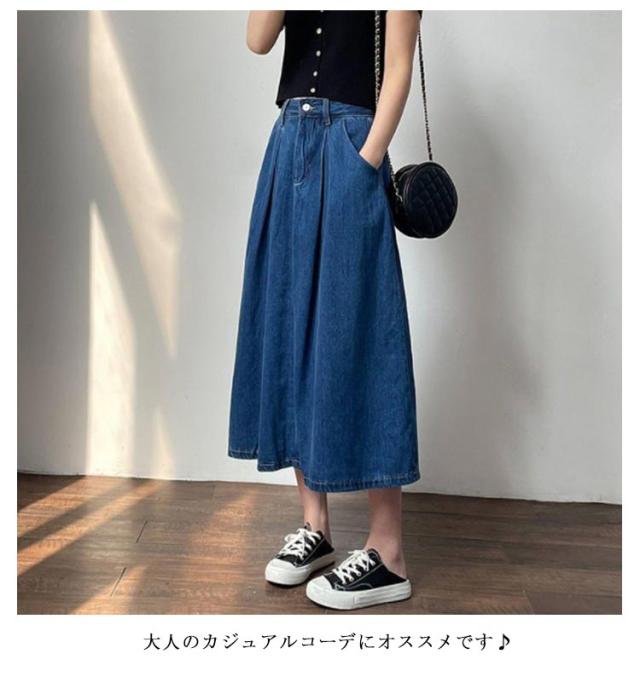 | 季節を問わず、流行も問わず,ずっと使い続けられるデニムスカート。 カジュアルなスタイルに欠かせない★ ボリューム感たっぷりのデニムロングスカートは脚長効果抜群!! 人気のコンパクトトップスと合わせて着ていただくとオシャレ感がUPします♪ 大人のカジュアルコーデにオススメです♪ | |