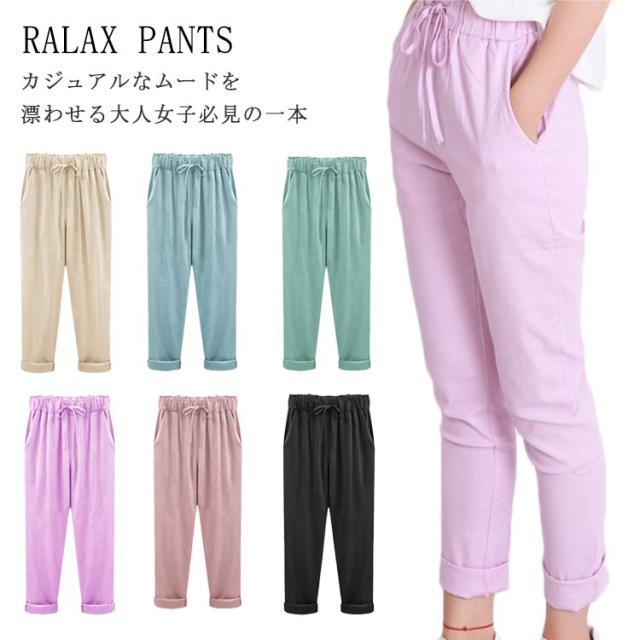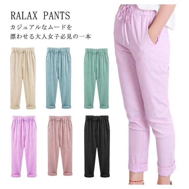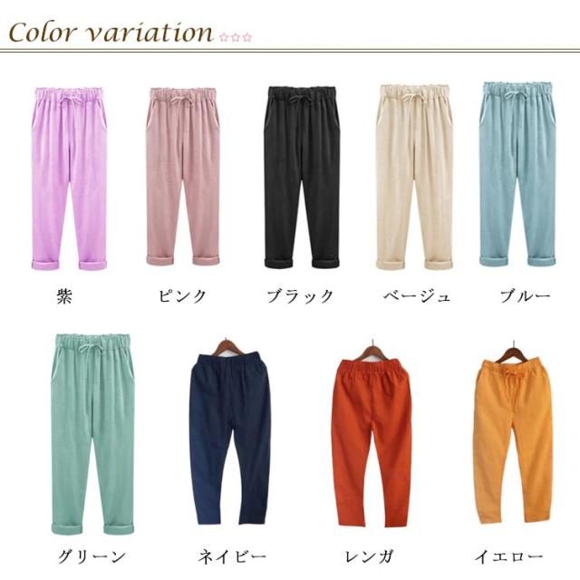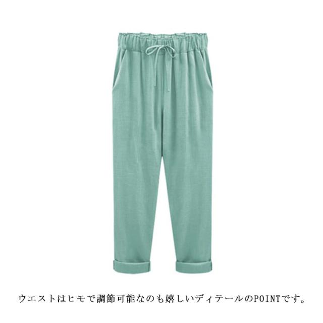 9分丈 綿麻パンツ サルエルパンツ リネンパンツ レディース 綿麻 テーパードパンツ アンクルパンツ ロングパンツ リラックスパンツ 綿麻 パンツ イージーパンツ ルームウェア ボトムス