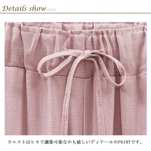 | カジュアルなムードを漂わせる大人女子必見の一本をご紹介。 リネンパンツのやさしい肌触りはこれからのシーズンに大活躍すること間違いなしです。 ウエストはヒモで調節可能なのも嬉しいディテールのPOINTです。 気負わず自然体でいられるので部屋でのリラックスタイムなどシーンを問わずに大活躍! | |