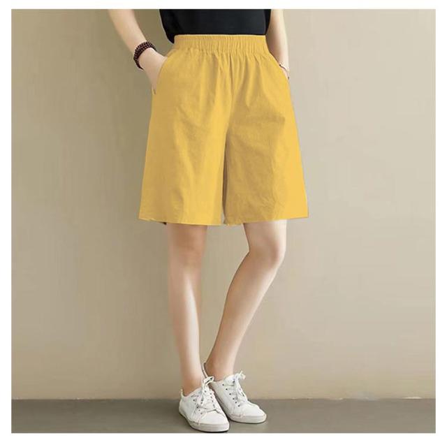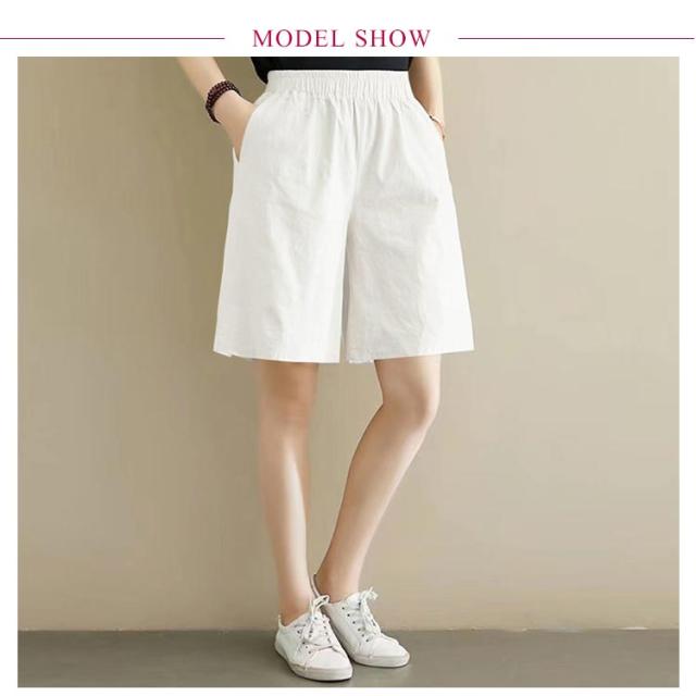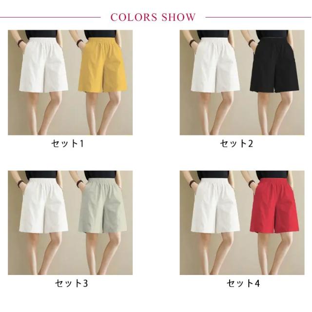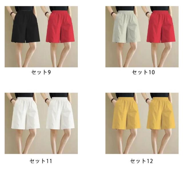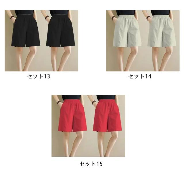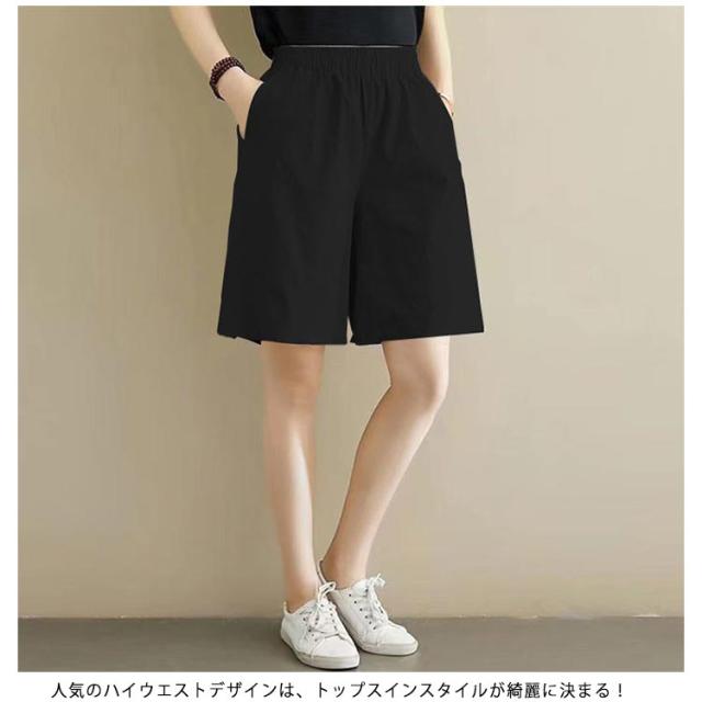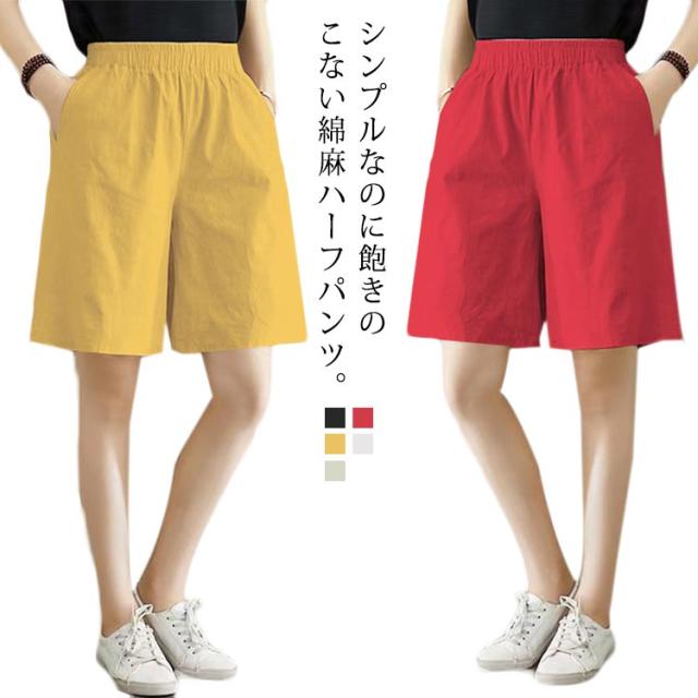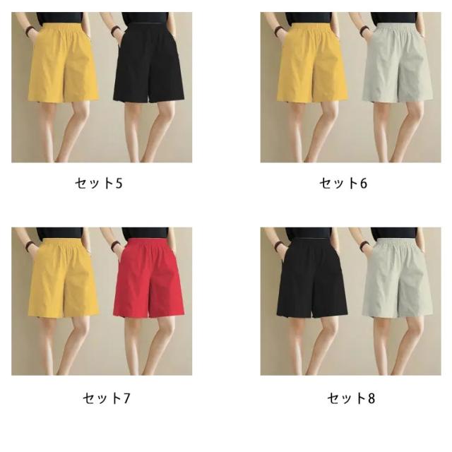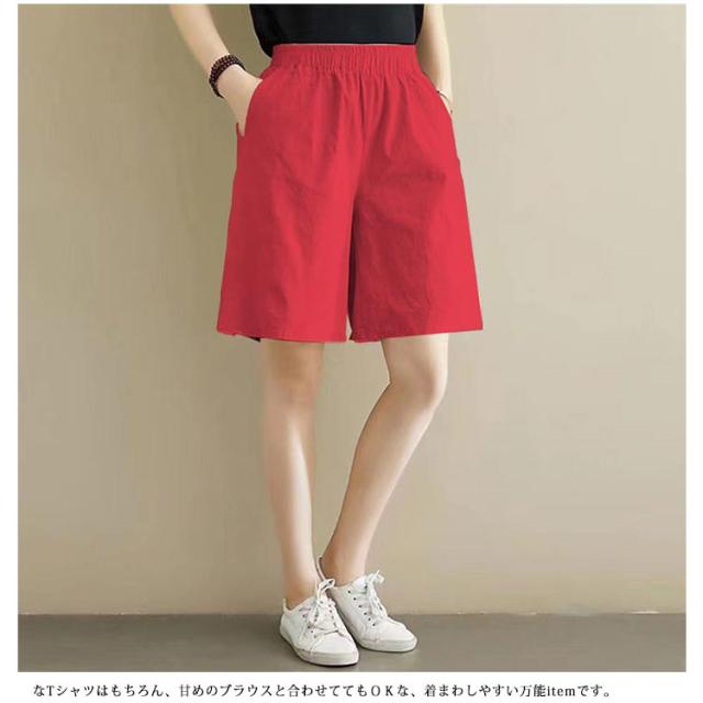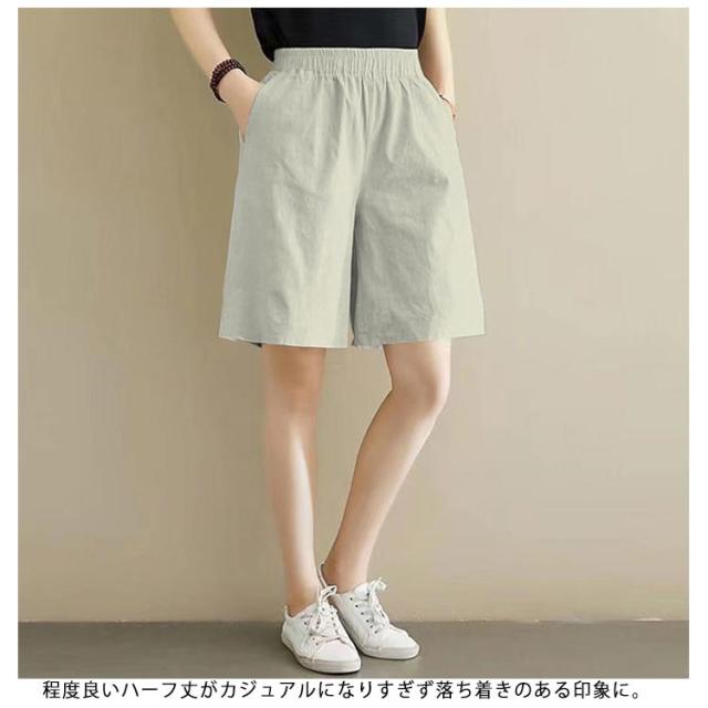 ハーフパンツ レディース 夏 綿麻 2点セット ショートパンツ ワイドパンツ ガウチョパンツ リネン ワイドシルエット ボトムス 5分丈 膝丈 ポケット付き 体型カバー 大きいサイズ シンプル 無地
