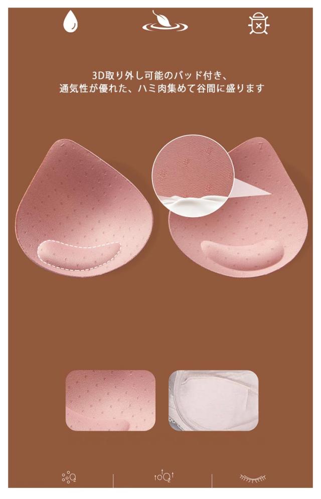 | 24時間使えるノンワイヤーブラ 薄さ<2mmなので、体に優しい柔らかなフィット感 圧倒的な柔らかさ!肌触り極上のやわらか素材を一度体験してみて 痛くなく、苦しくない、長時間着用しても快適で気持ちのいい着け心地 3D取り外し可能のバッド付き、通気性が優れた、ハミ肉集めて谷間に盛ります U字型バックストラップでアウターに贅肉が響がず脇から背中をすっきり抑える、自然と背筋もシャキッと | |