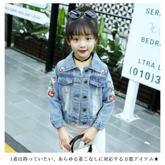 刺繍デニム 子供 女の子 キッズ デニムジャケット デニムアウター 子供服 長袖アウター 色落ち カジュアル 入学式 卒業式 可愛い 人気 おしゃれ 春新作