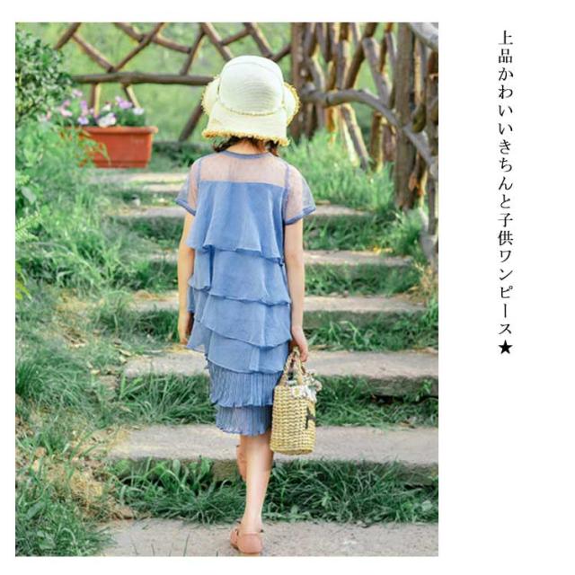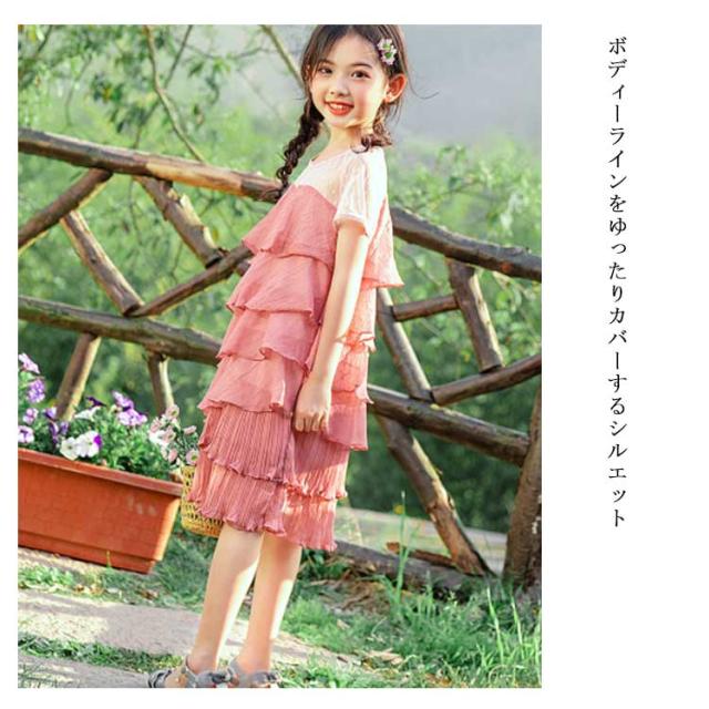 ティアードワンピース 子供服 女の子 ガールズ 子どもワンピース シフォンワンピース ノースリーブワンピース フリルワンピース ひざ丈ワンピ プリーツ ドレス バックボタン付き カジュアル 発表会 ビーチ 旅行 夏 パーティ新作