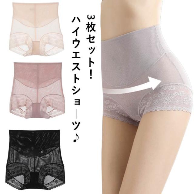女性 レースショーツ レディース 送料無料 ショーツ 股上深め ショーツ レディースショーツ スタンダード シンプル 美尻 ハイウエスト レース 3枚セット インナー 深め 肌にやさしい 伸縮性 腹巻 下着