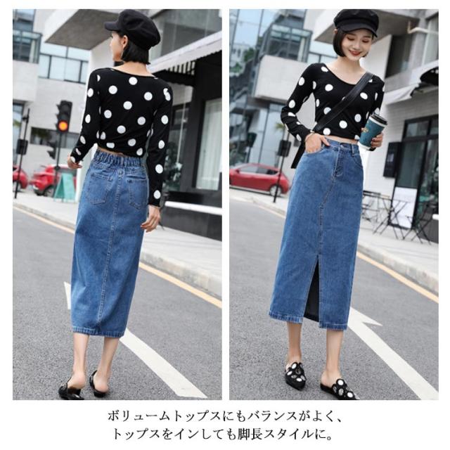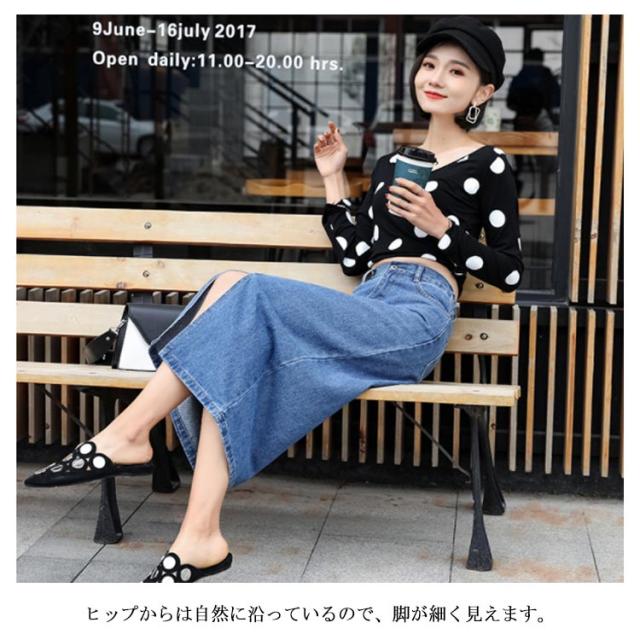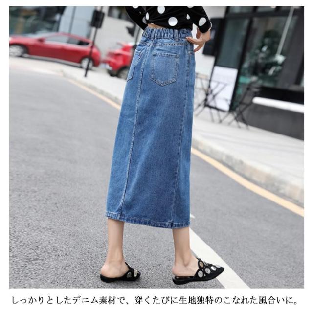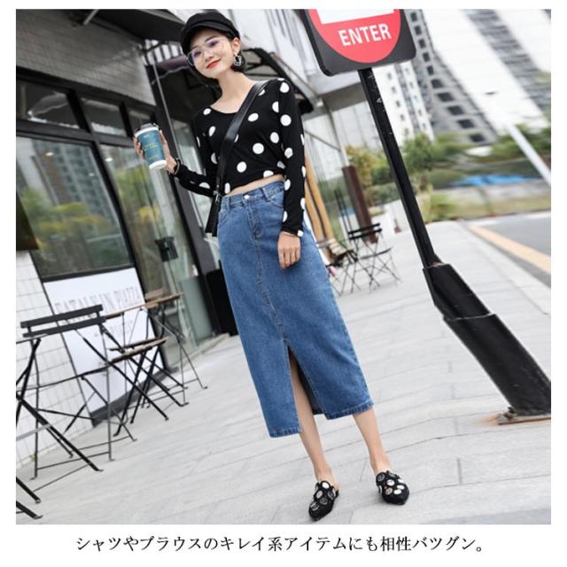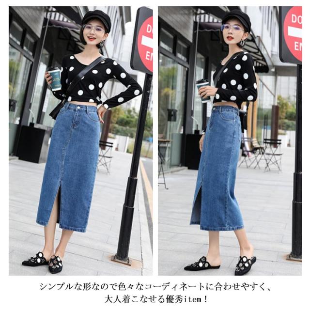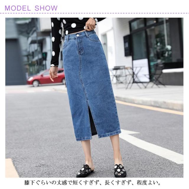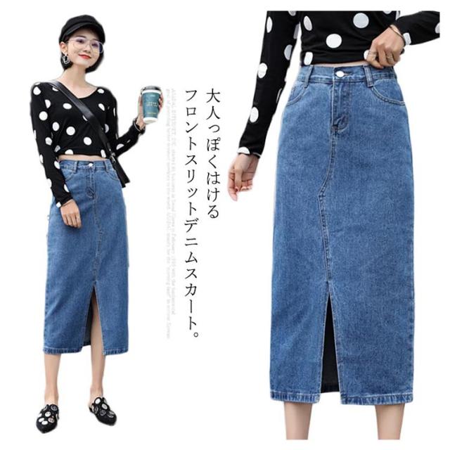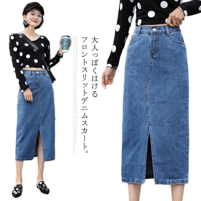 フロントスリットデニムスカート スカート デニムスカート ミモレスカート デニムロングスカート ハイウエスト Aラインスカート 膝下丈 大きサイズ
