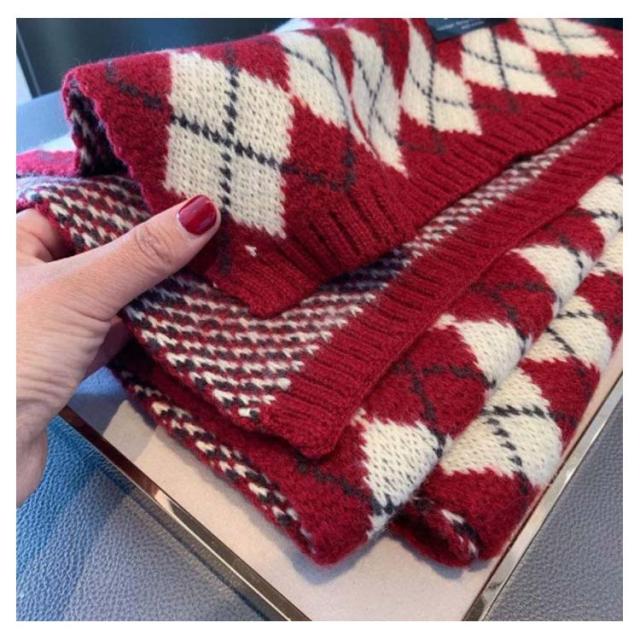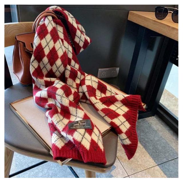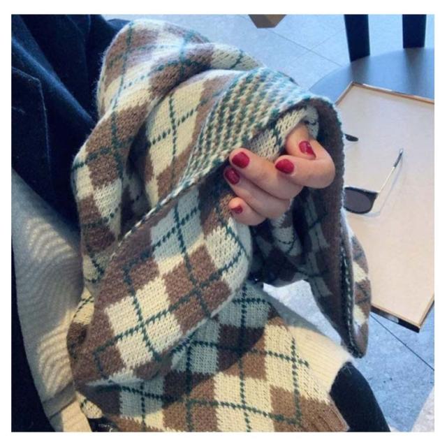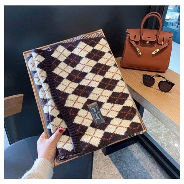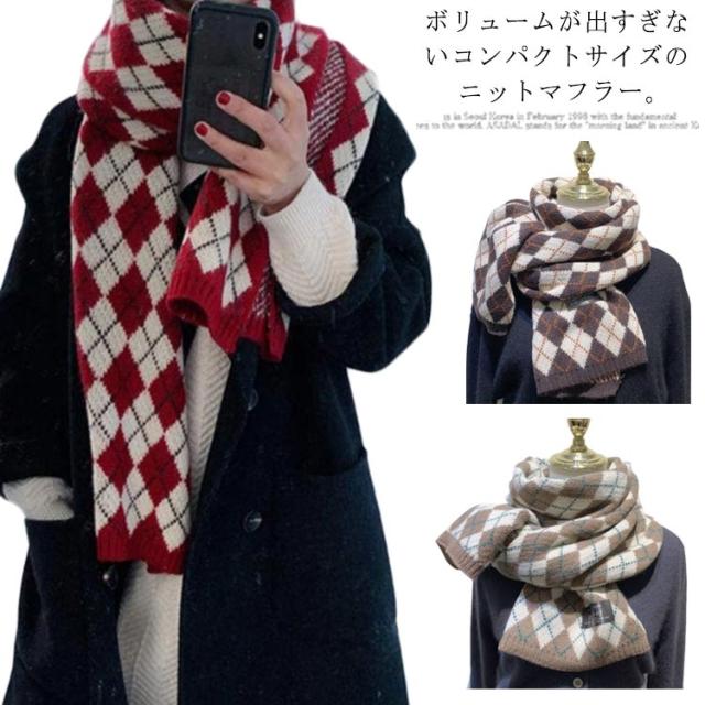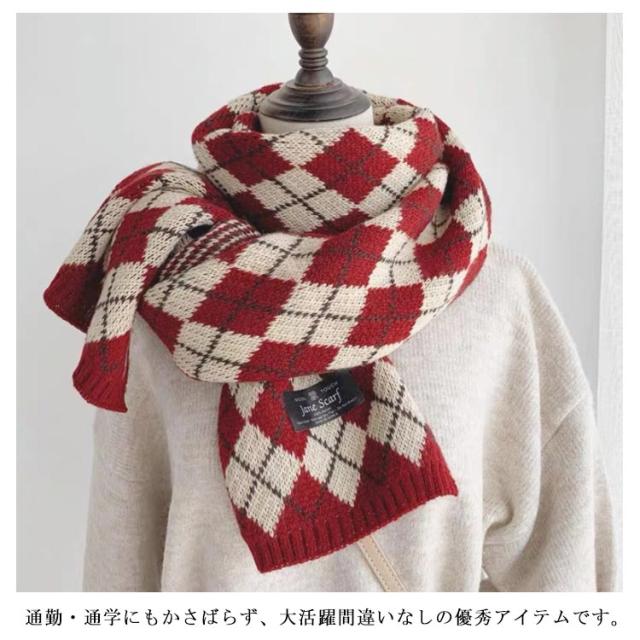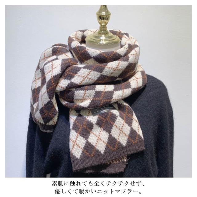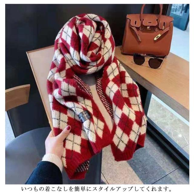 男女兼用 マフラー レディース チェック柄 ストール ふわふわ 厚手 冬 ニットマフラー ギンガムチェック 暖かい カップル ペア マフラー お揃い ニットストール ネック