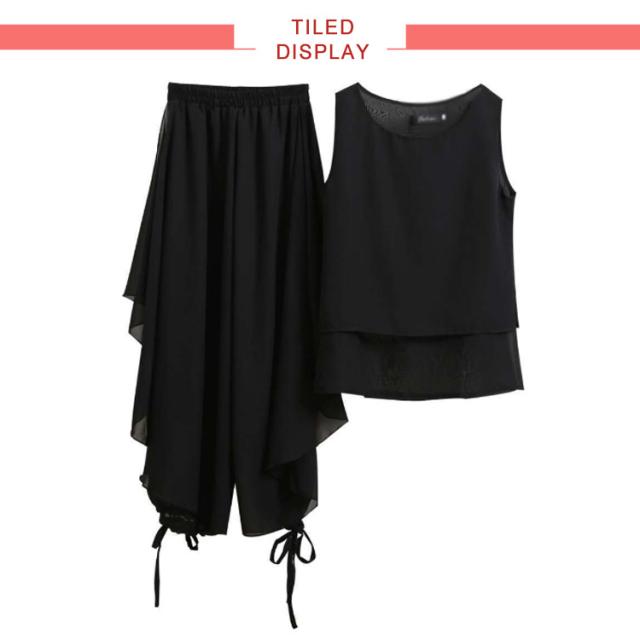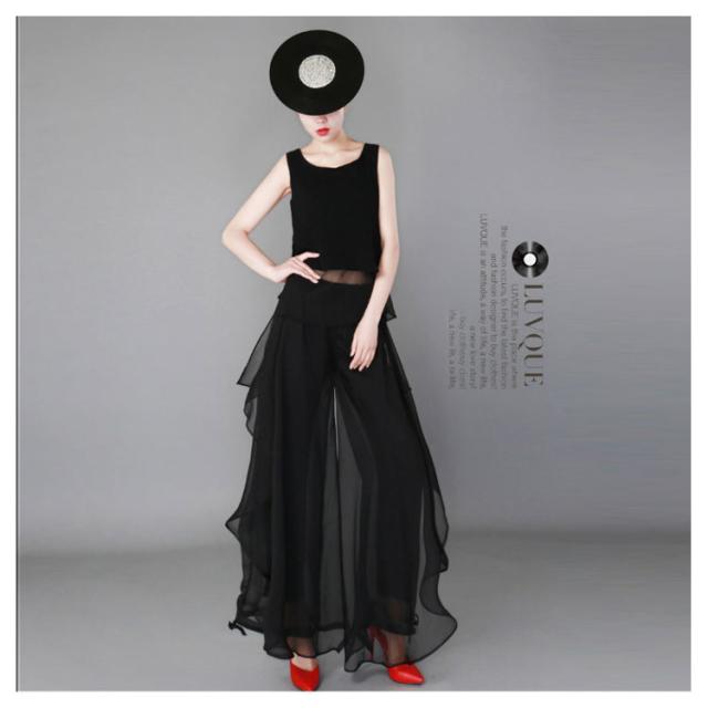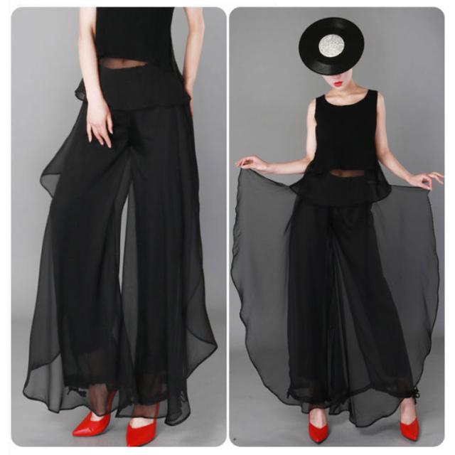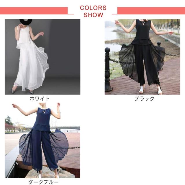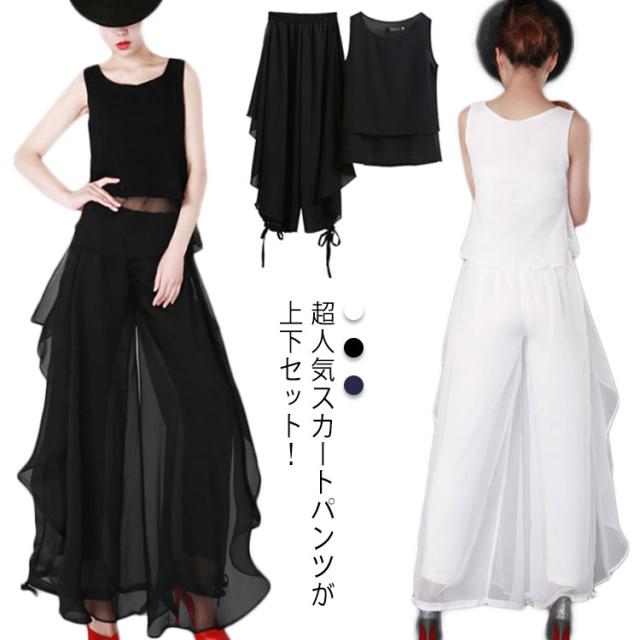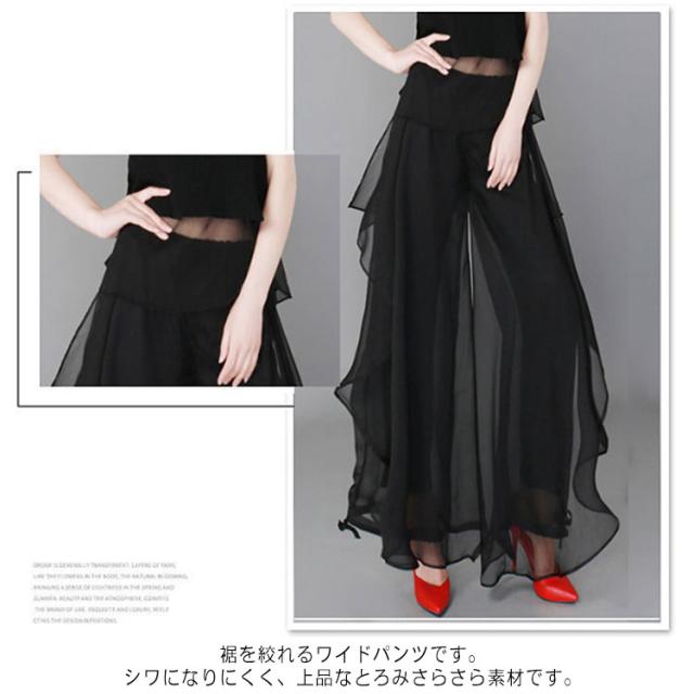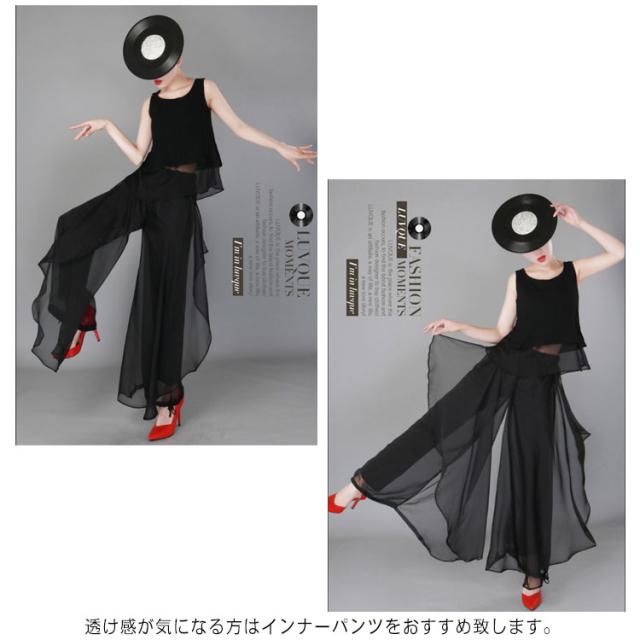| 超人気スカートパンツが上下セット! 裾を絞れるワイドパンツです。シワになりにくく、上品なとろみさらさら素材です。 ウエストは総ゴム仕様となっており、履き心地快適!ヨガやレッスン着、ダンス衣装、流行りのコンテンポラリーダンスにも大人気! 透け感が気になる方はインナーパンツをおすすめ致します。 ※裏地の長さは膝丈です。 | |
