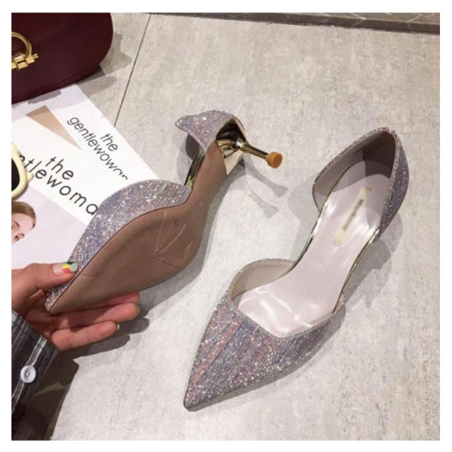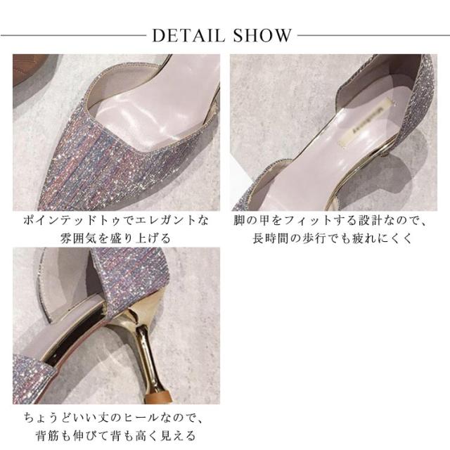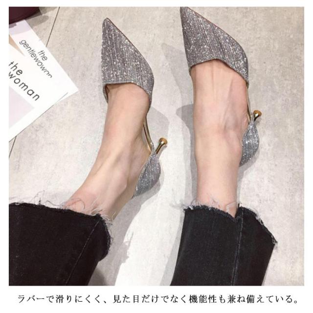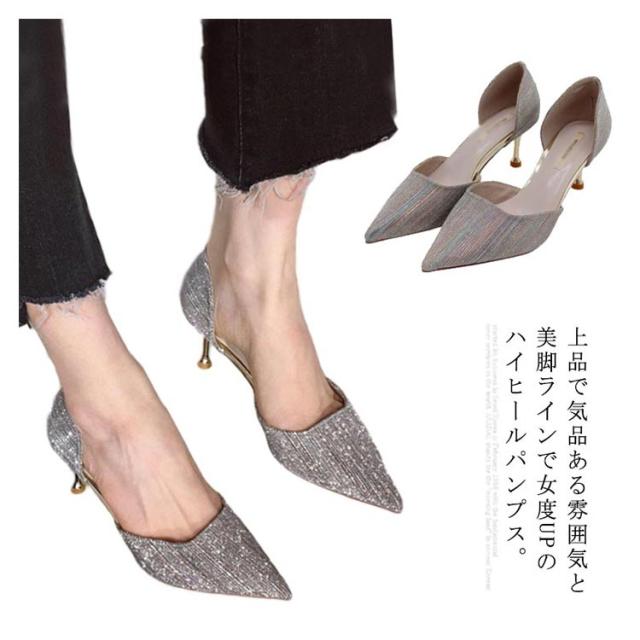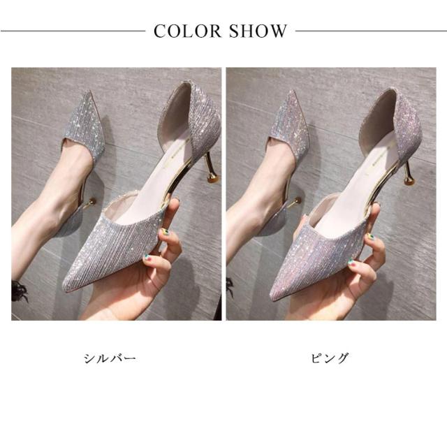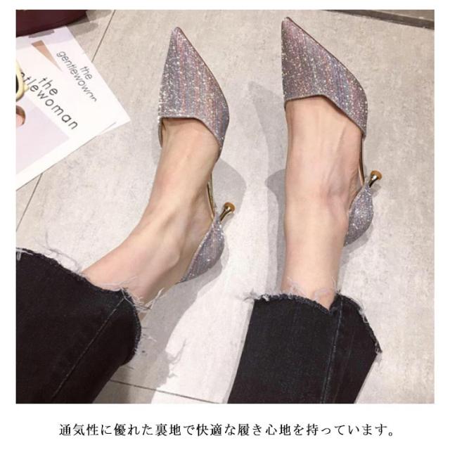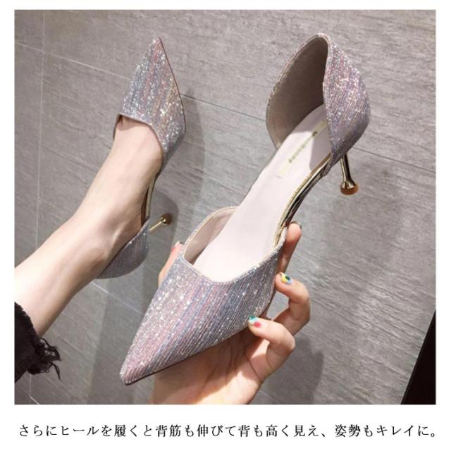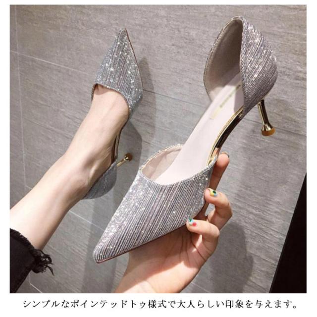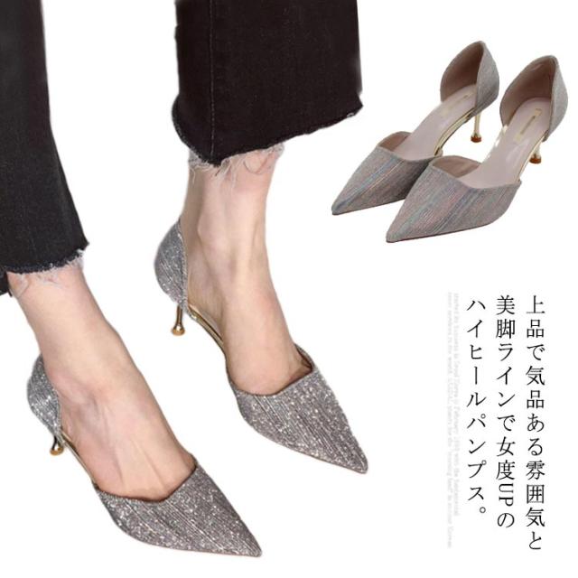 パンプス ハイヒール 美脚 レディース ポインテッドトゥ ウェディングシューズ ピンヒール パーティーシューズ 靴 結婚式 宴会 キラキラ 痛くない 発表会 2次会 シルバー