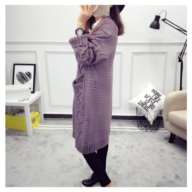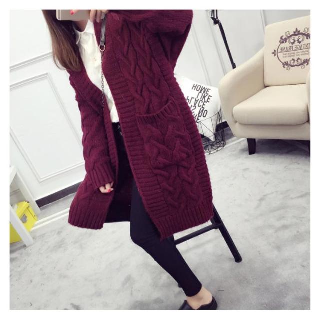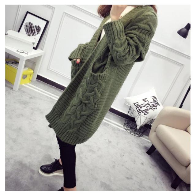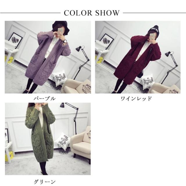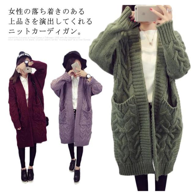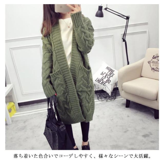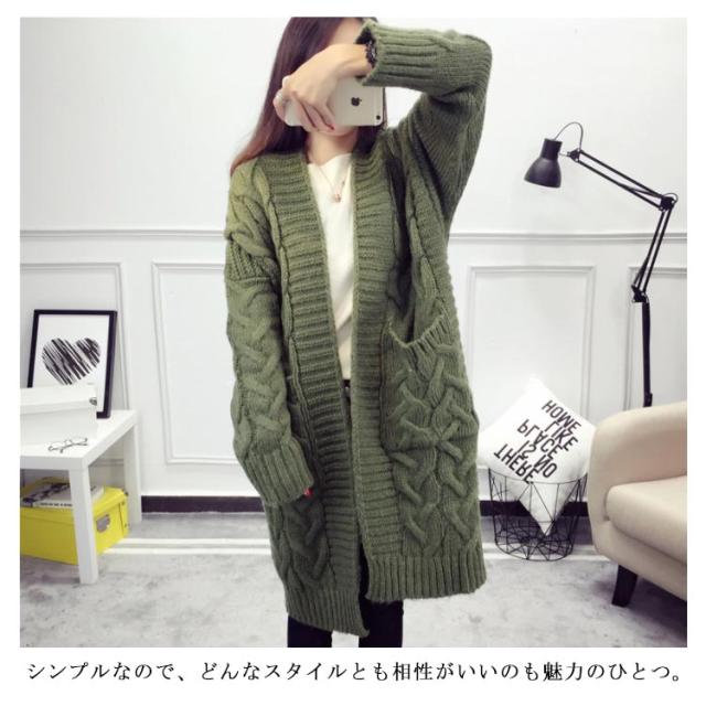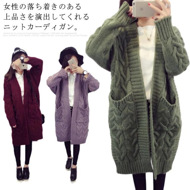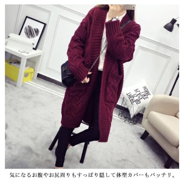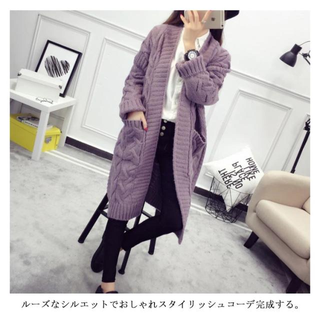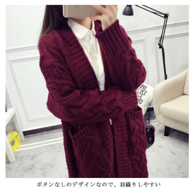 ニットカーディガン ロング ざっくり編み ローゲージ ケーブル編み ビッグシルエット 大きいサイズ ボタンなしカーディガン ニットソー カーデ Vネック 羽織り 前開き 無地 シンプル 定番
