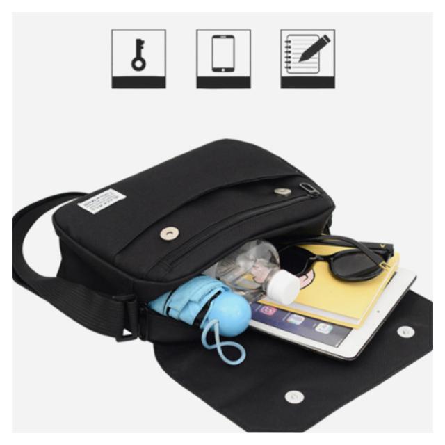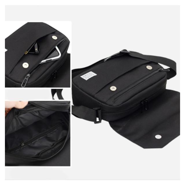 | 使いやすさを重視した軽量のフラップショルダーバッグ。 大きすぎず、小さすぎず、スマホに長財布、キーケース、水筒等、B5雑誌サイズも収納可能! フラップは簡単なマグネットボタン開閉、メインスペースと外側・内側の計5つのポケットできれいに整理整頓できる。 カジュアルはもちろんきれいめスタイルにも合わせやすく、すっきりしたコーデを楽しめます。 荷物が少ない男性や、ユニセックスなデザインだから女性にもおススメ★ | |