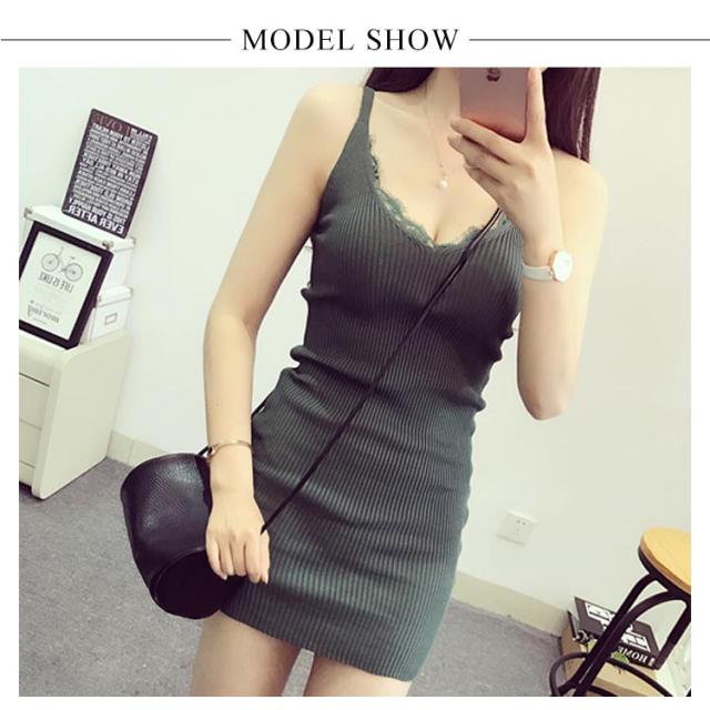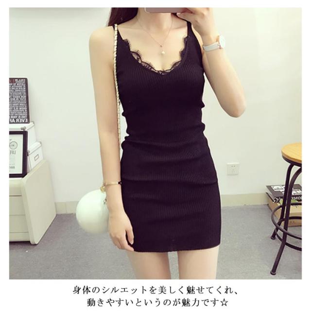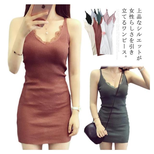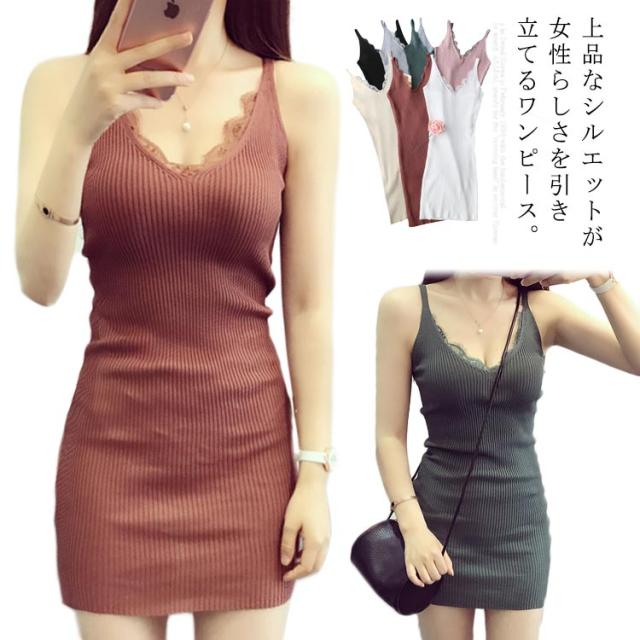 ニットワンピース タイト チュニックワンピース vネック キャミソール ショートワンピース 無地 インナー ミニワンピース セクシー フェミニン 美シルエット 袖なしワンピース 定番 オシャレ シンプル