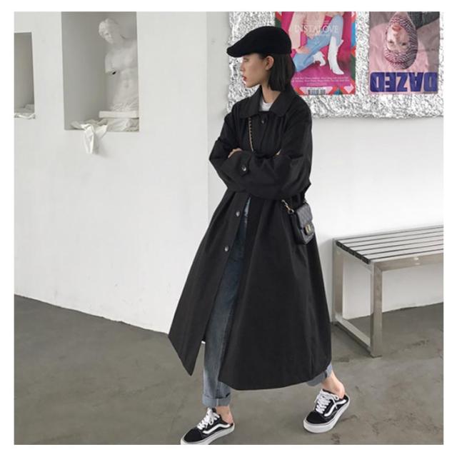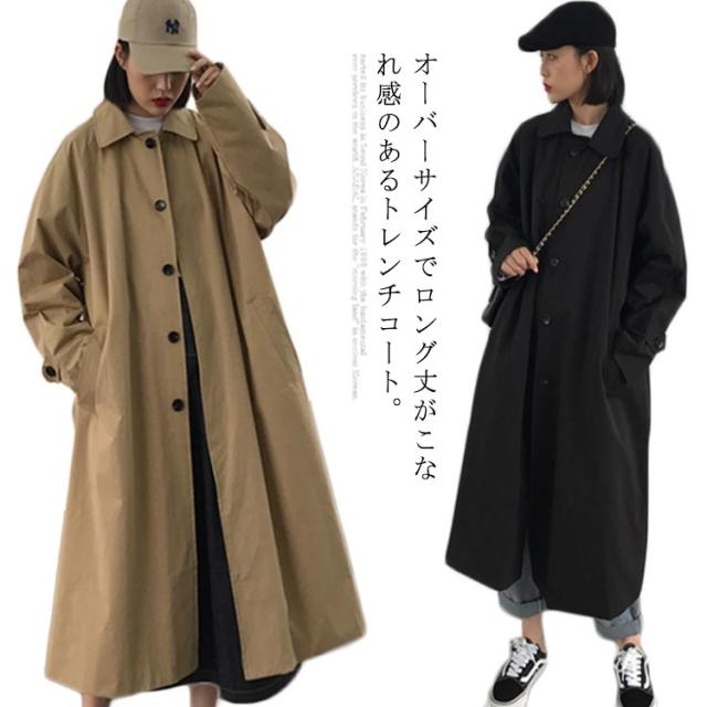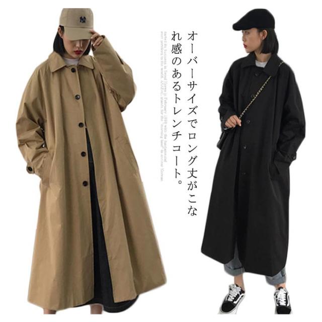 トレンチコート レディース ロングコート スプリングコート オーバーサイズ 体型カバー ロング丈 春秋コート アウター お洒落 春秋物 レトロ