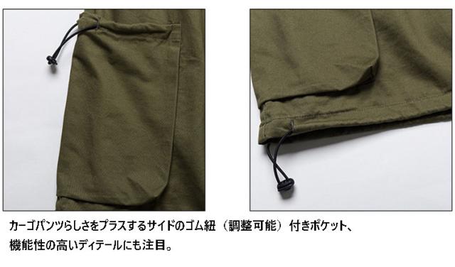 | リラックスして穿けるゆったりとしたワイドシルエットで、旬なスタイルにもバッチリハマるアイテム。 ゴム仕様のウエスト ドローコードで体にフィットするストレスフリーな穿き心地。 生地には程よい肉感で、しっかりとしたハリがあって丈夫な素材を採用。 カーゴパンツらしさをプラスするサイドのゴム紐(調整可能)付きポケット、機能性の高いディテールにも注目。 タウンユースだけではなく、アウトドアシーンでも活躍してくれる今季注目の一本です! | |