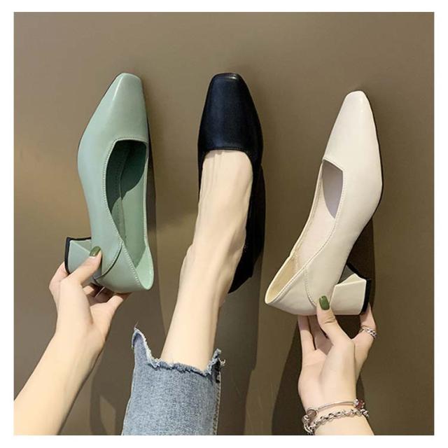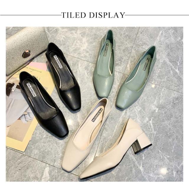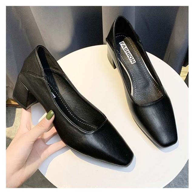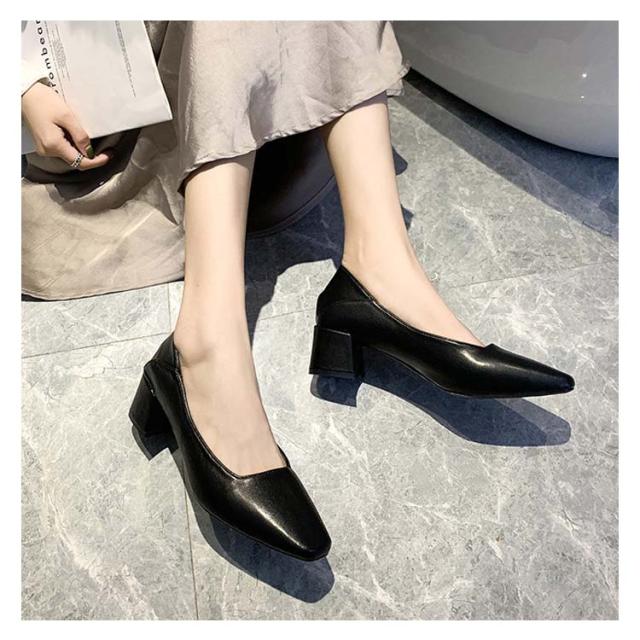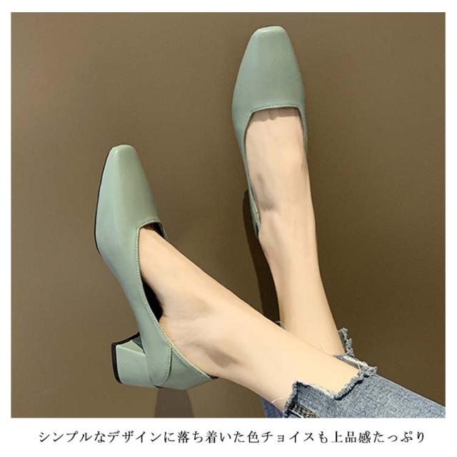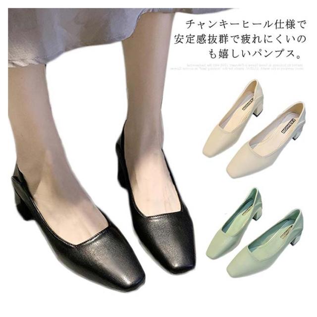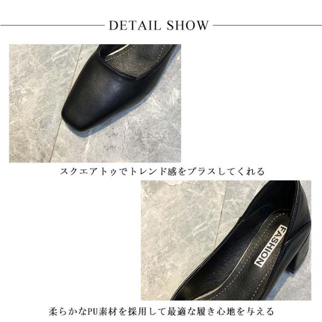 パンプス スクエアトゥ レディース PUパンプス レザーパンプス レトロ 履きやすい 痛くない チャンキーヒール 太ヒール 美脚 大きいサイズ 歩きやすい パーディー