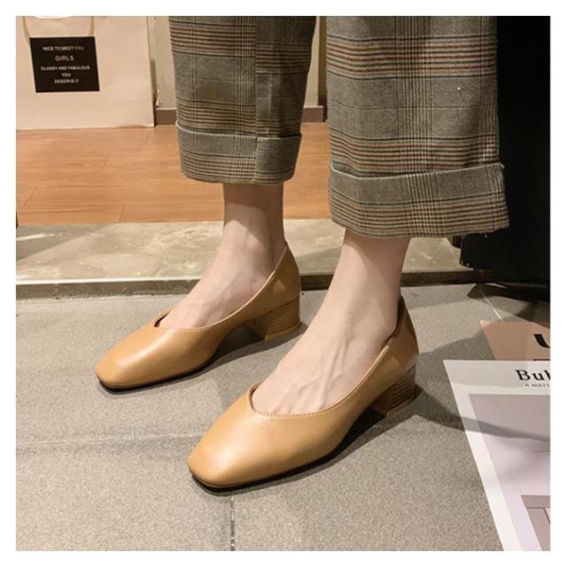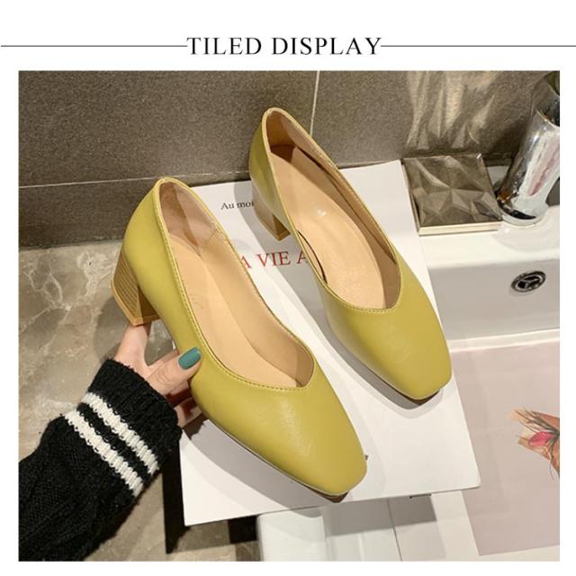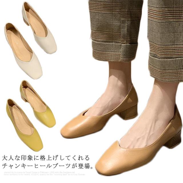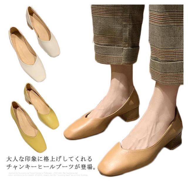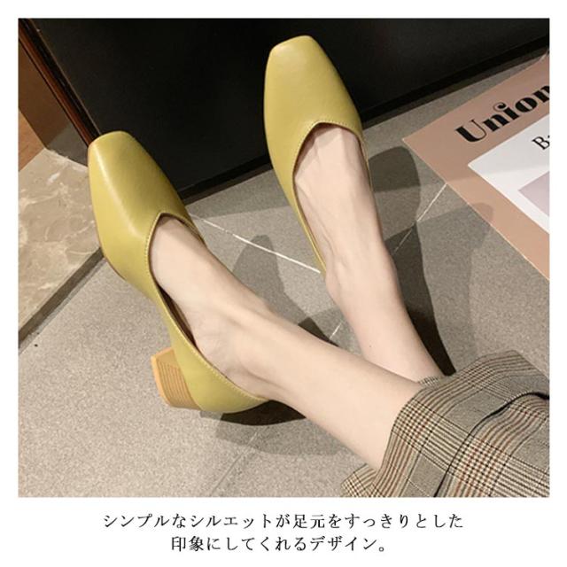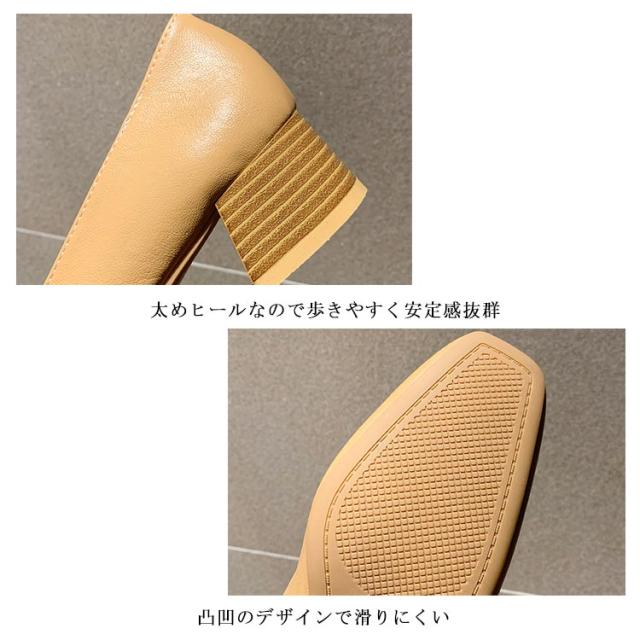 パンプス スクエアトゥ レディース 太めヒール レザーパンプス 美脚 走れる 歩きやすい PUパンプス 女性 靴 シンプル レトロ くつ おしゃれ OL 通勤 結婚式