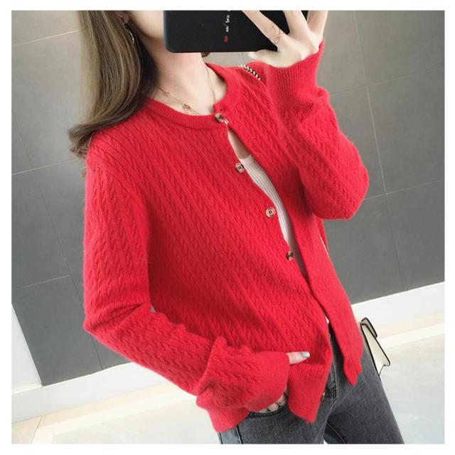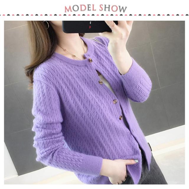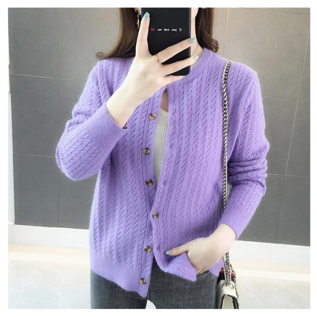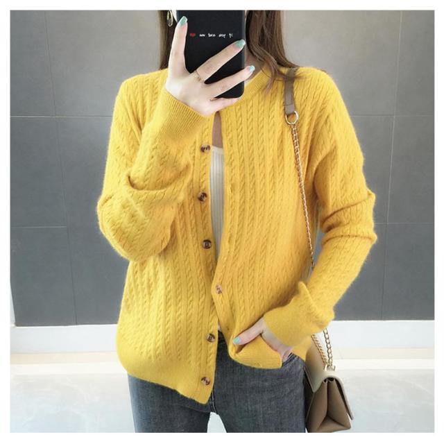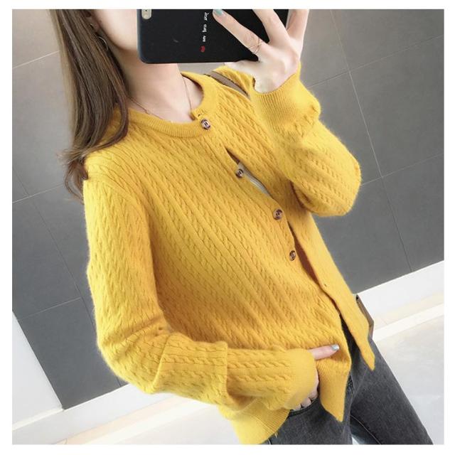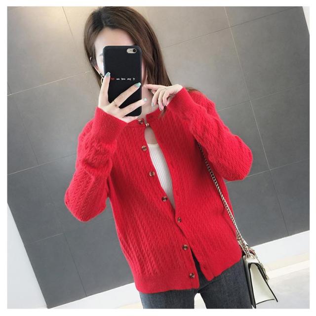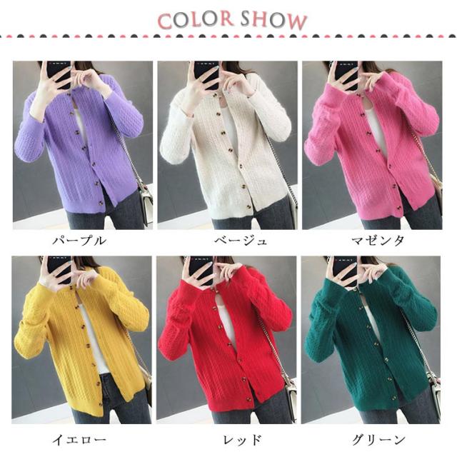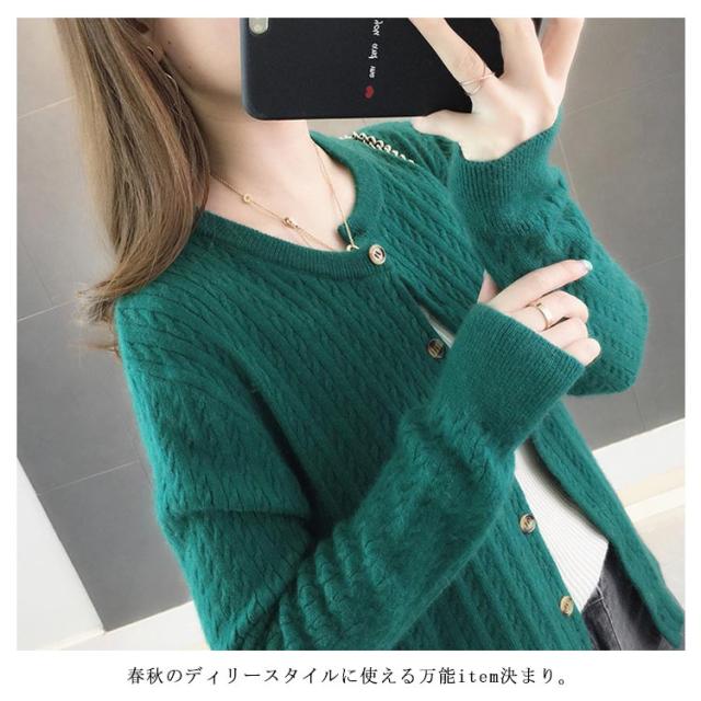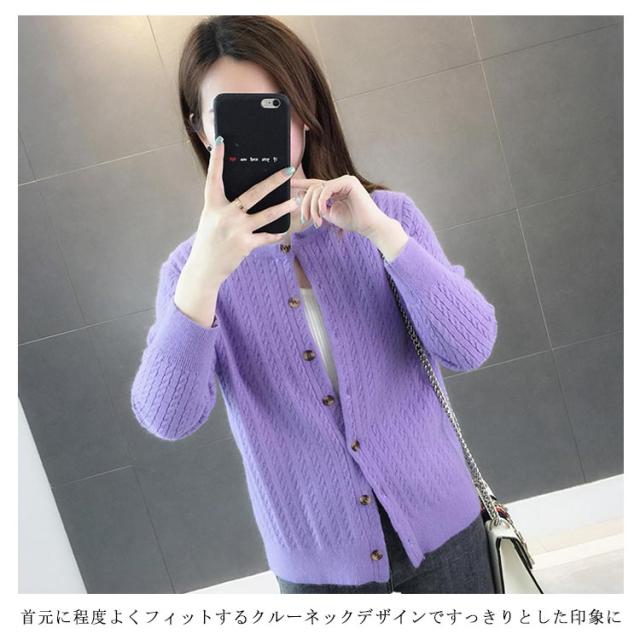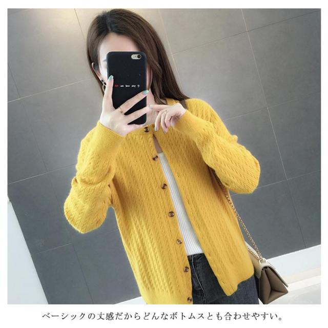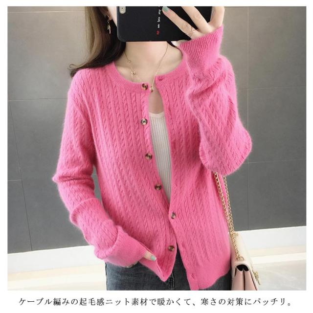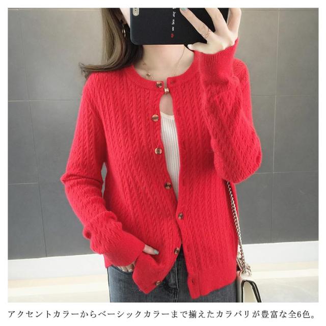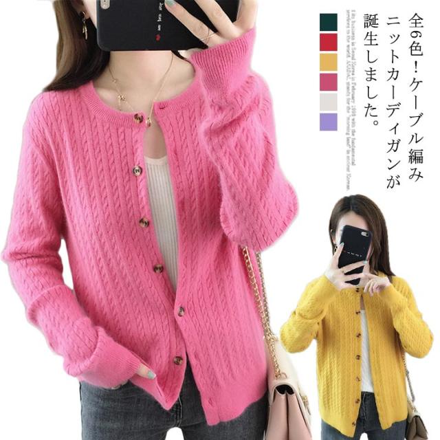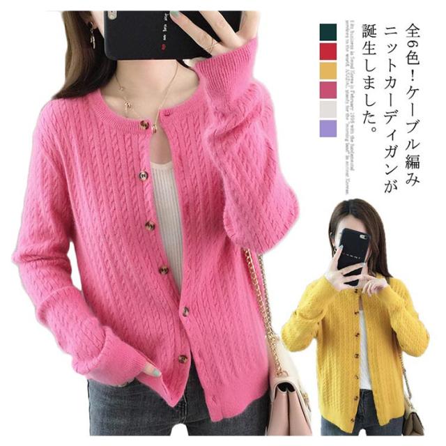全6色!ケーブル編み ニットカーディガン ニット カーディガン クルーネック 丸首 長袖カーディガン ケーブルニット 前ボタン ショート丈 春服 秋服