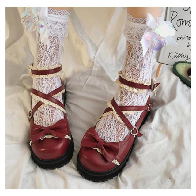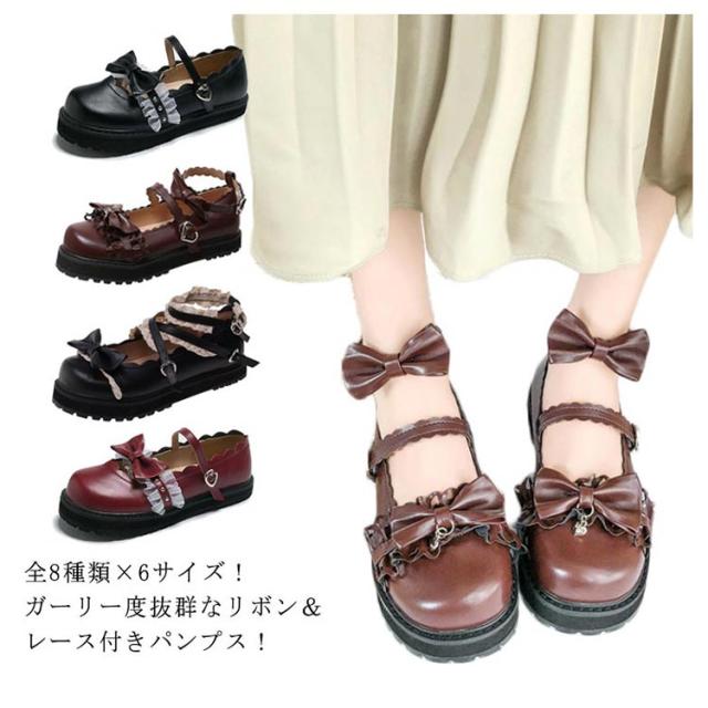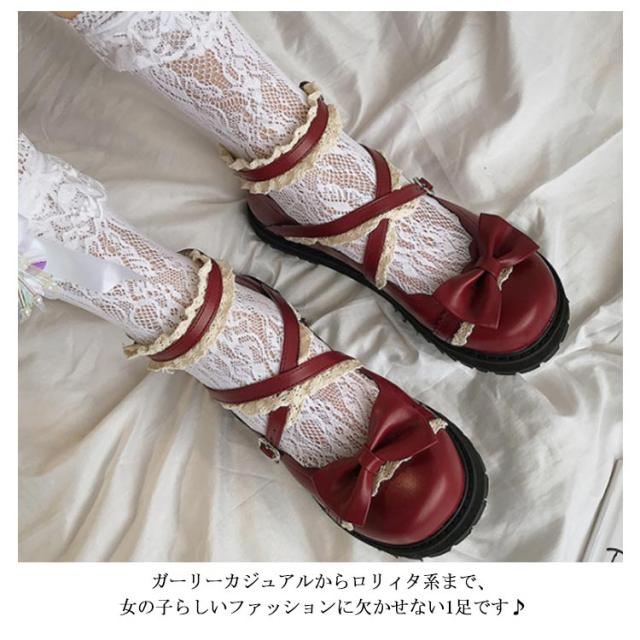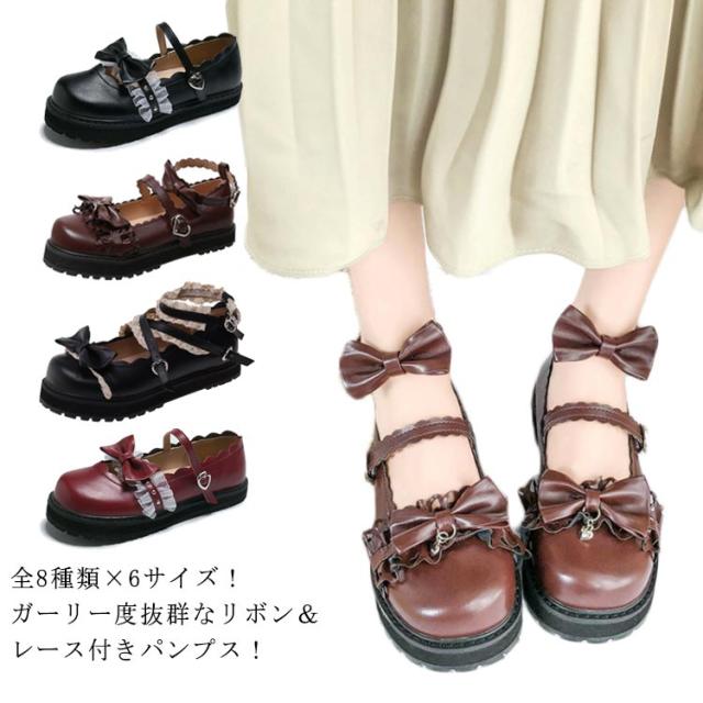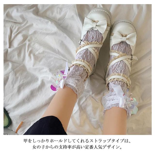 全8種類×6サイズ!クロスストラップ パンプス スクールシューズ ローファー ロリター系 靴 シューズ ストラップ レース リボン 森ガール 大人可愛い