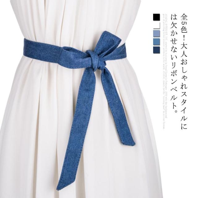 全5色!デニムベルト リボンベルト ウエストベルト デニム地 ベルト レディース 細ベルト 細め 布ベルト アクセサリー ファッショングッズ 雑貨 小物