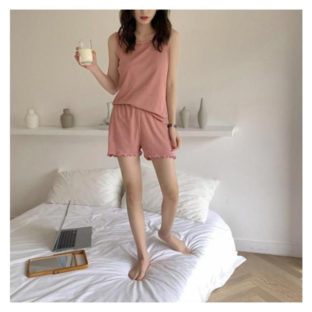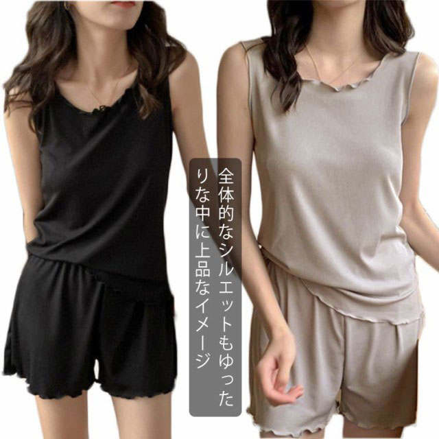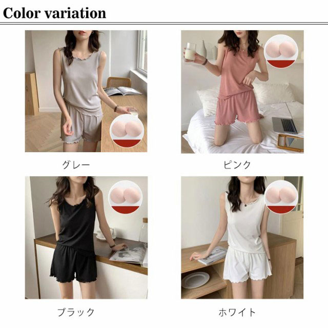 ルームウェア レディース パジャマ カップ付き 上下セット 送料無料 綿 2点セット 半袖 タックトップ ノースリーブ 無地 部屋着 通気性 婦人用 涼しい 夏 秋 春 かわいい マタニティ 入院 哺乳 授乳 ふんわり 柔らかい プレゼント