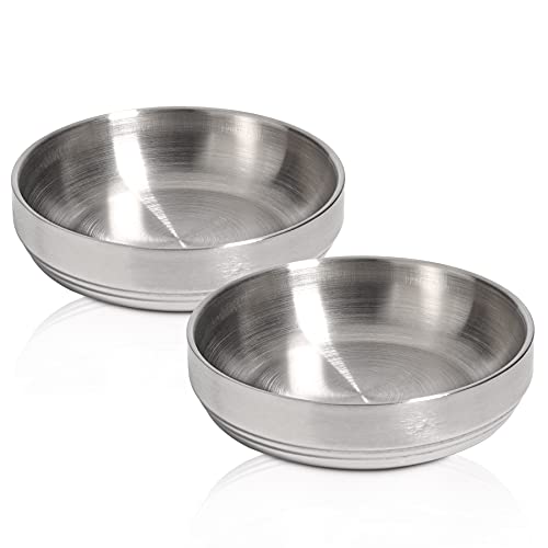ComSaf 猫食器 猫皿 猫フードボウル ステンレス製 浅広口 二層構造 断熱効果あり 水飲みボウル 食器洗浄機対応 2個セット