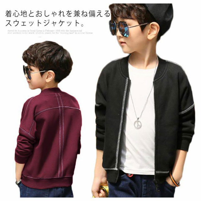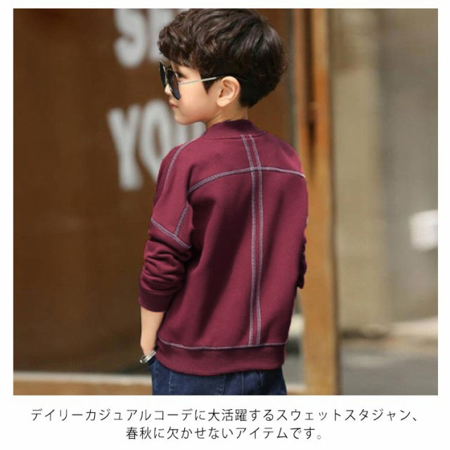 子供服 スタジャン 男の子 スウェット ジャケット アウター 無地 ジュニア キッズ おしゃれ ドロップショルダー ジャンパー スウェットスタジャン 小学生 中学生 110cm 120cm 130cm 140cm 150cm 160cm