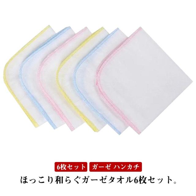 6枚セット ガーゼタオル ハンドタオル ガーゼ ハンカチ 無地 タオル ガーゼハンカチ タオルハンカチ ミニハンカチ ガーゼハンカチ ウォッシュタオル ふきん おしぼり セット ベビー 子供 大人 幼稚園 保育園 プチギフト 吸水 コンパクト ギフト 送料無料