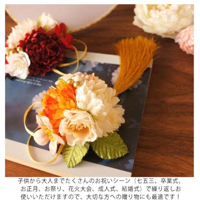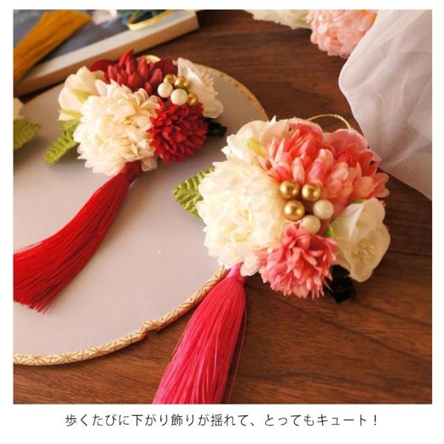 | 和装(振袖・着物・浴衣・袴など)に合わせてご利用いただけます。 歩くたびに下がり飾りが揺れて、とってもキュート! 子供から大人までたくさんのお祝いシーン(七五三、卒業式、お正月、お祭り、花火大会、成人式、結婚式)で繰り返しお使いいただけますので、大切な方への贈り物にも最適です! | |