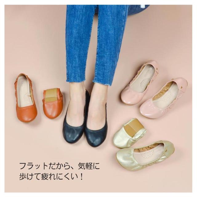 折りたたみシューズ 柔らかい レディース 靴 フラット パンプス ぺたんこ バレエシューズ ラウンドトゥ 痛くない 折り畳み 携帯シューズ 軽量 運転 学校 入学式 卒業式 参観日 旅行 婦人靴 プレゼント 春夏 送料無料